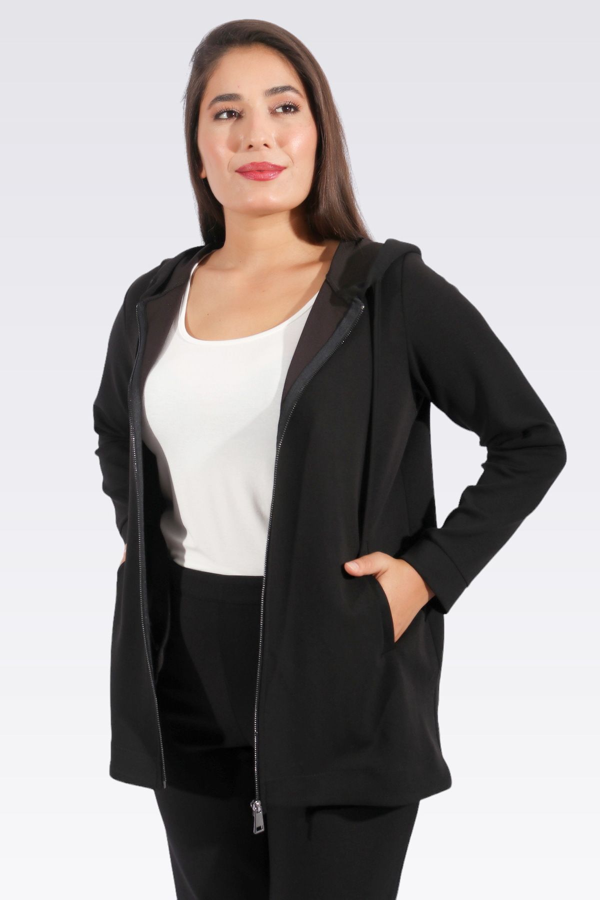 Grace Kapüşonlu Fermuarlı Regular Fit Basic Sweatshirt-Fildişi Grace Kapüşonlu Fermuarlı Regular Fit Basic Sweatshirt-Fildişi 25401 XL