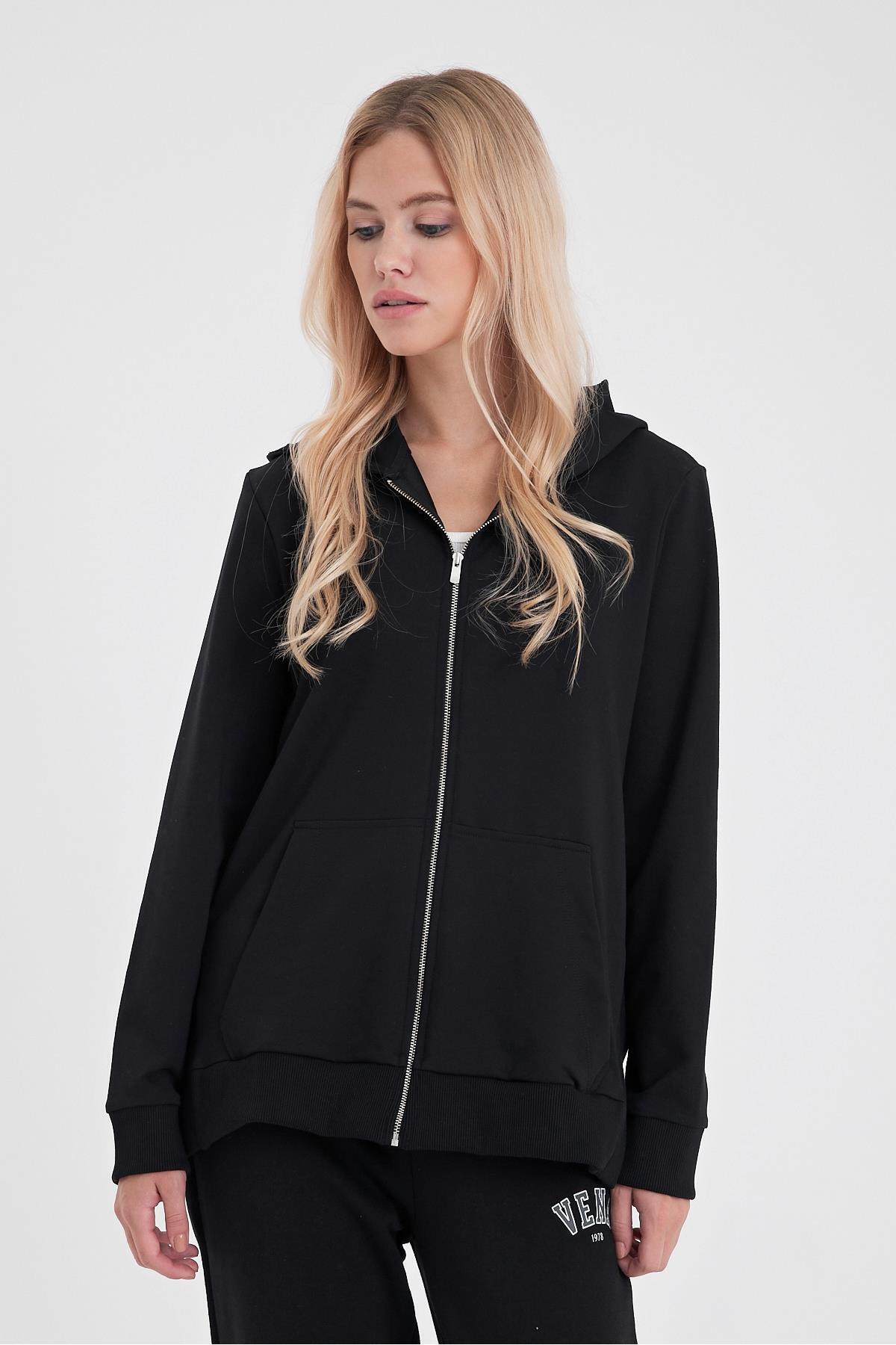 Gwen Yanı Yırtmaçlı Fermuarlı Sweatshirt-Siyah Gwen Yanı Yırtmaçlı Fermuarlı Sweatshirt-Siyah 200010 XL