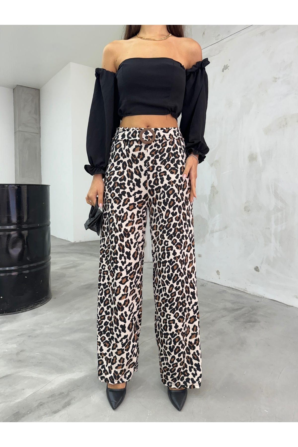 Kadın Yüksek Bel Leopar Desenli Kemer Detaylı Palazzo Pantolon Kadın Yüksek Bel Leopar Desenli Kemer Detaylı Palazzo Pantolon BKL12685009 L
