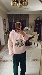 Kedi Baskılı Sweatshirt Kapüşonlu Şardonlu Rahat Kalıp Kedi Baskılı Sweatshirt Kapüşonlu Şardonlu Rahat Kalıp 5WAL10565IK XL