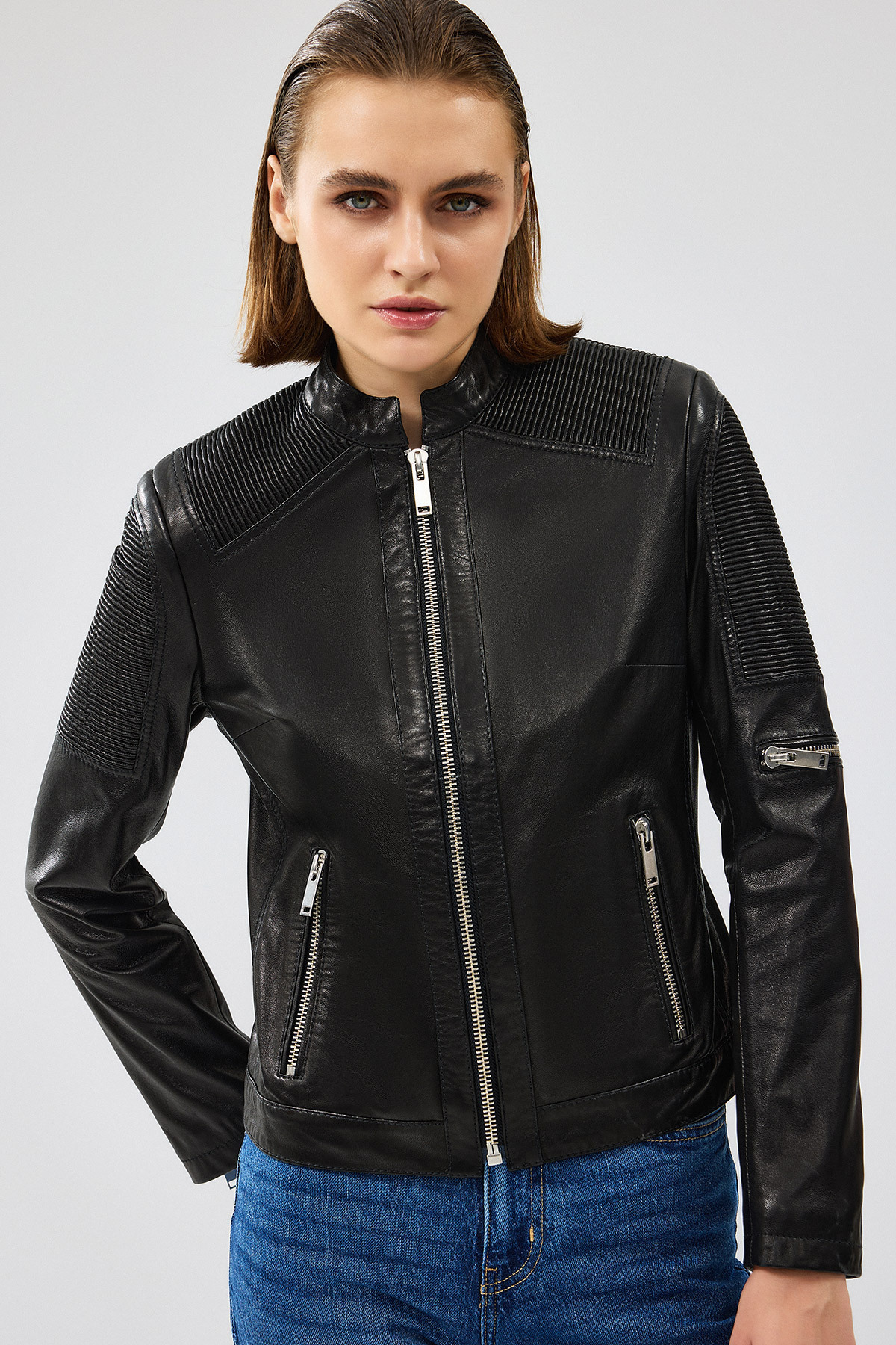 Firenze Kadın Siyah Kısa Deri Ceket 24WGD5230VE Firenze Kadın Siyah Kısa Deri Ceket 24WGD5230VE 2XL