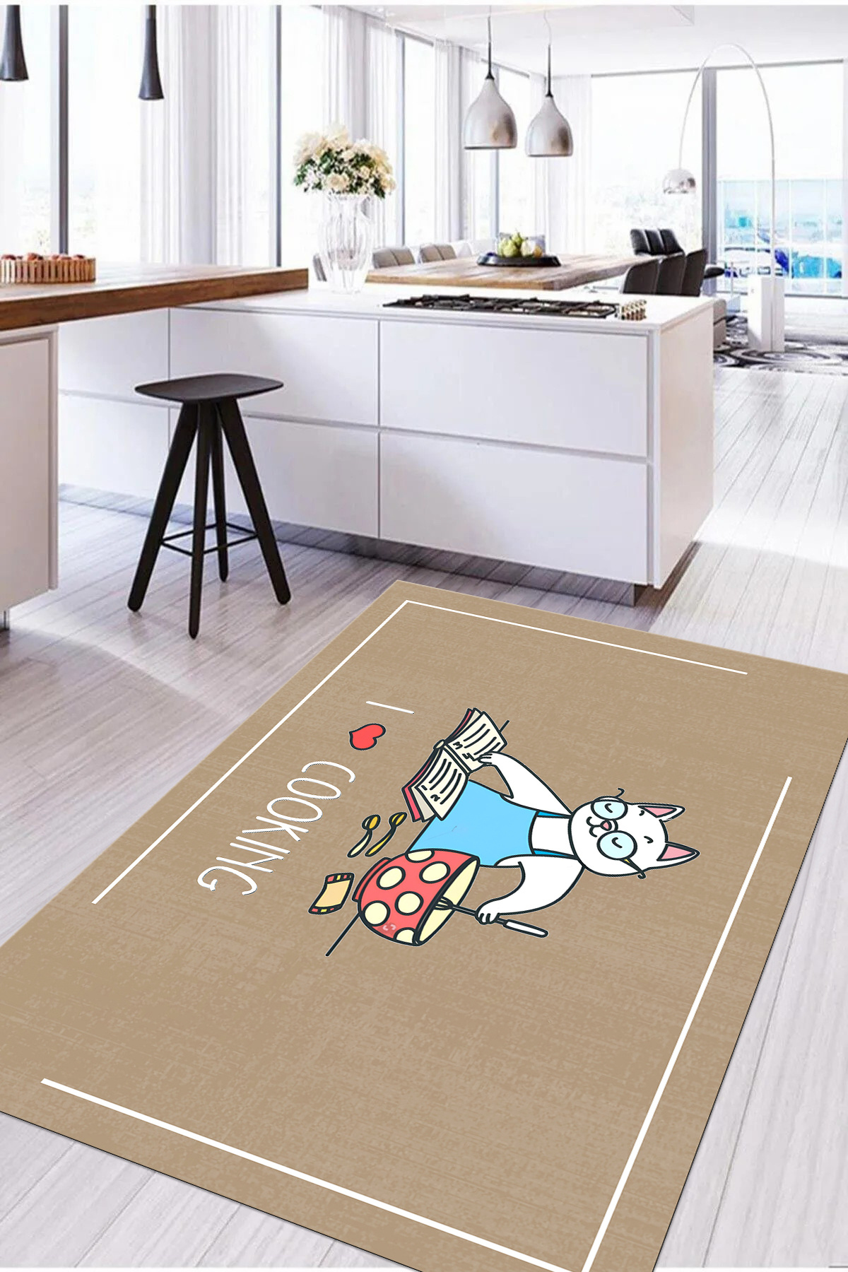 Dijital Baskılı Modern Kedi Motifli Yıkanabilir Kaymaz Taban Yolluk Salon Mutfak Halısı Dijital Baskılı Modern Kedi Motifli Yıkanabilir Kaymaz Taban Yolluk Salon Mutfak Halısı MUTFAK-90 160 x 230