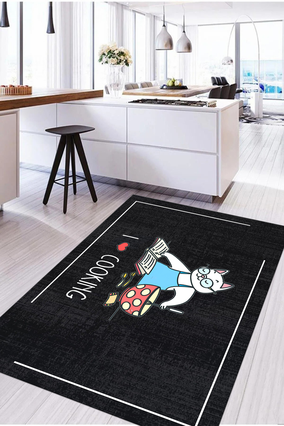 Dijital Baskılı Modern Kedi Motifli Yıkanabilir Kaymaz Taban Yolluk Salon Mutfak Halısı Dijital Baskılı Modern Kedi Motifli Yıkanabilir Kaymaz Taban Yolluk Salon Mutfak Halısı MUTFAK-90 160 x 230
