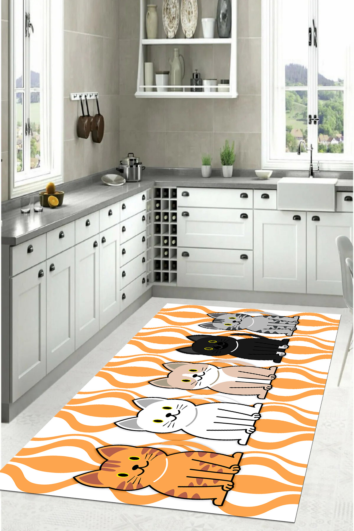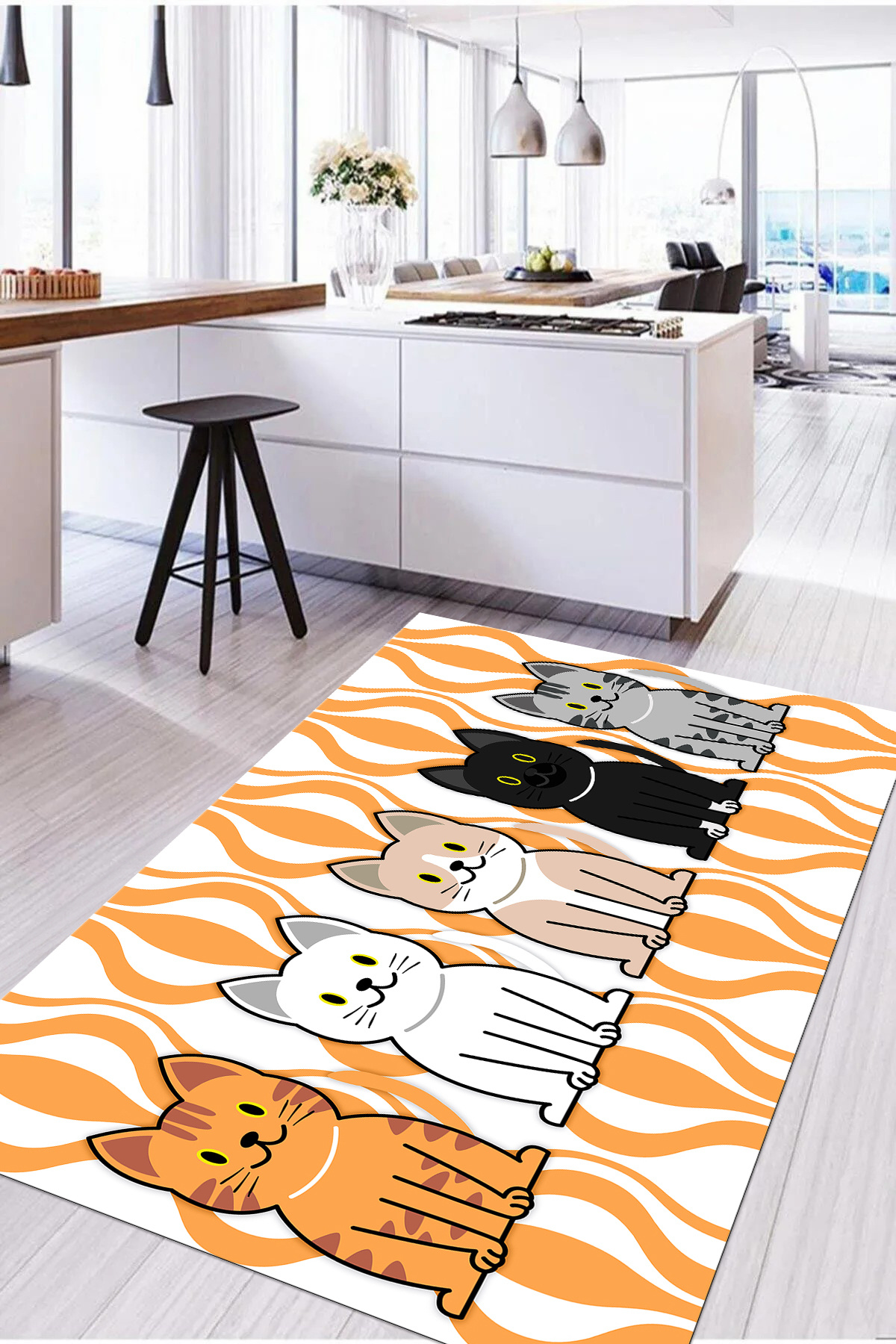 Dijital Baskılı Kedi Figürlü Yıkanabilir Kaymaz Taban Yolluk Salon Mutfak Halısı Dijital Baskılı Kedi Figürlü Yıkanabilir Kaymaz Taban Yolluk Salon Mutfak Halısı MUTFAK-53 160 x 230