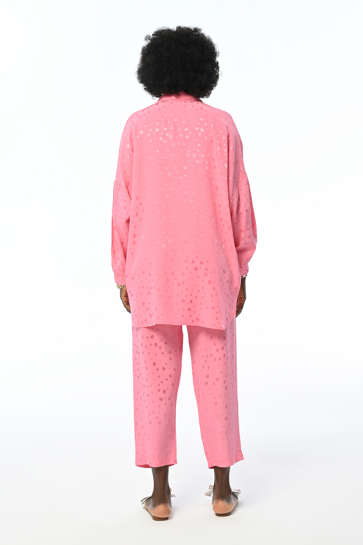 KADIN BELİ LASTİKLİ RAHAT KALIP DESENLİ PEMBE RENK JAKARLI PANTOLON KADIN BELİ LASTİKLİ RAHAT KALIP DESENLİ PEMBE RENK JAKARLI PANTOLON 39301 L