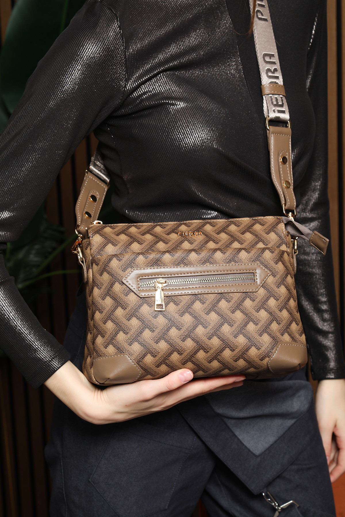 Taba Renk Bol Gözlü Örgü Desenli Tasarım Fermuarlı Omuz Askılı Yeni Sezon Kadın Çanta Taba Renk Bol Gözlü Örgü Desenli Tasarım Fermuarlı Omuz Askılı Yeni Sezon Kadın Çanta PİE5144 تک سایز