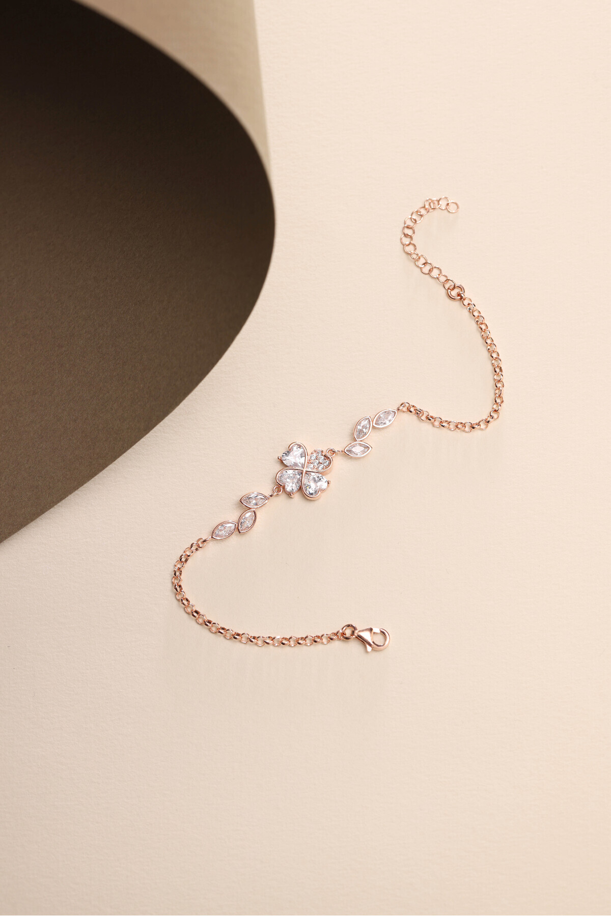 925 Ayar Gümüş Rose Kaplama Doç Zincir Beyaz Taşlı Yonca Bileklik 925 Ayar Gümüş Rose Kaplama Doç Zincir Beyaz Taşlı Yonca Bileklik NRZ999947 تک سایز