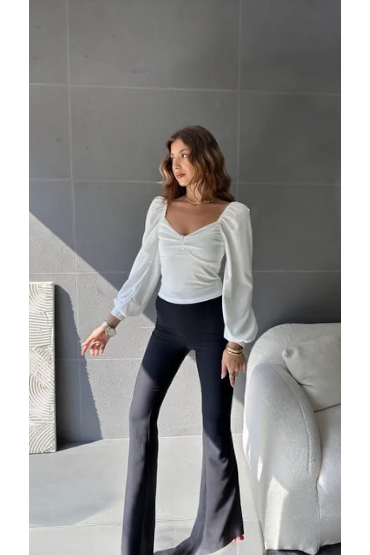 Kare Yaka Büzgü Detaylı Bluz Balon Kol Kare Yaka Büzgü Detaylı Bluz Balon Kol DF2119 XL