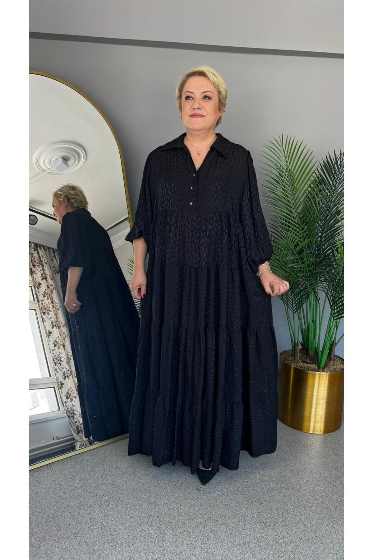 Büyük Beden İnci Bantlı Elbise Büyük Beden İnci Bantlı Elbise 25KELB-00045 2