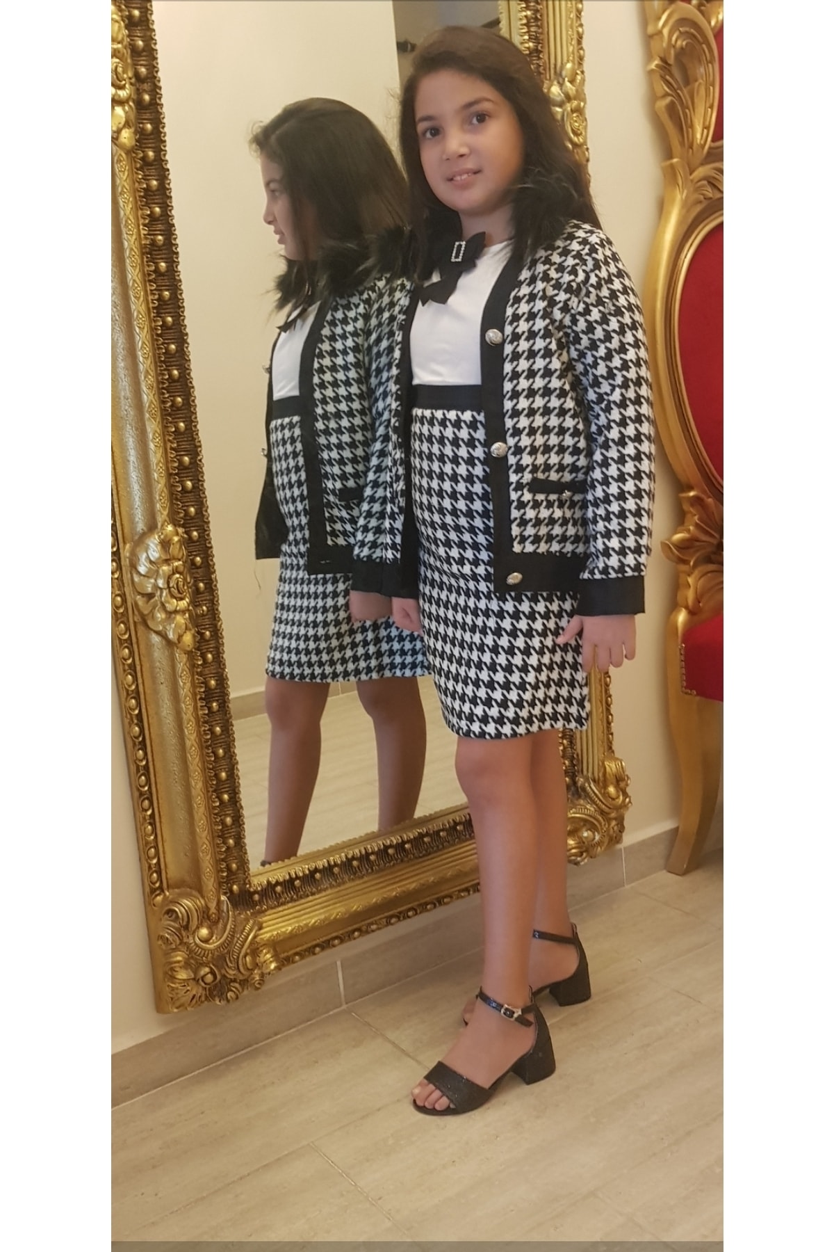 Kız Cocuk Şanel Astarlı Takım Ceket Gomlek Etek Kız Cocuk Şanel Astarlı Takım Ceket Gomlek Etek 3344-1 13-14 Yaş