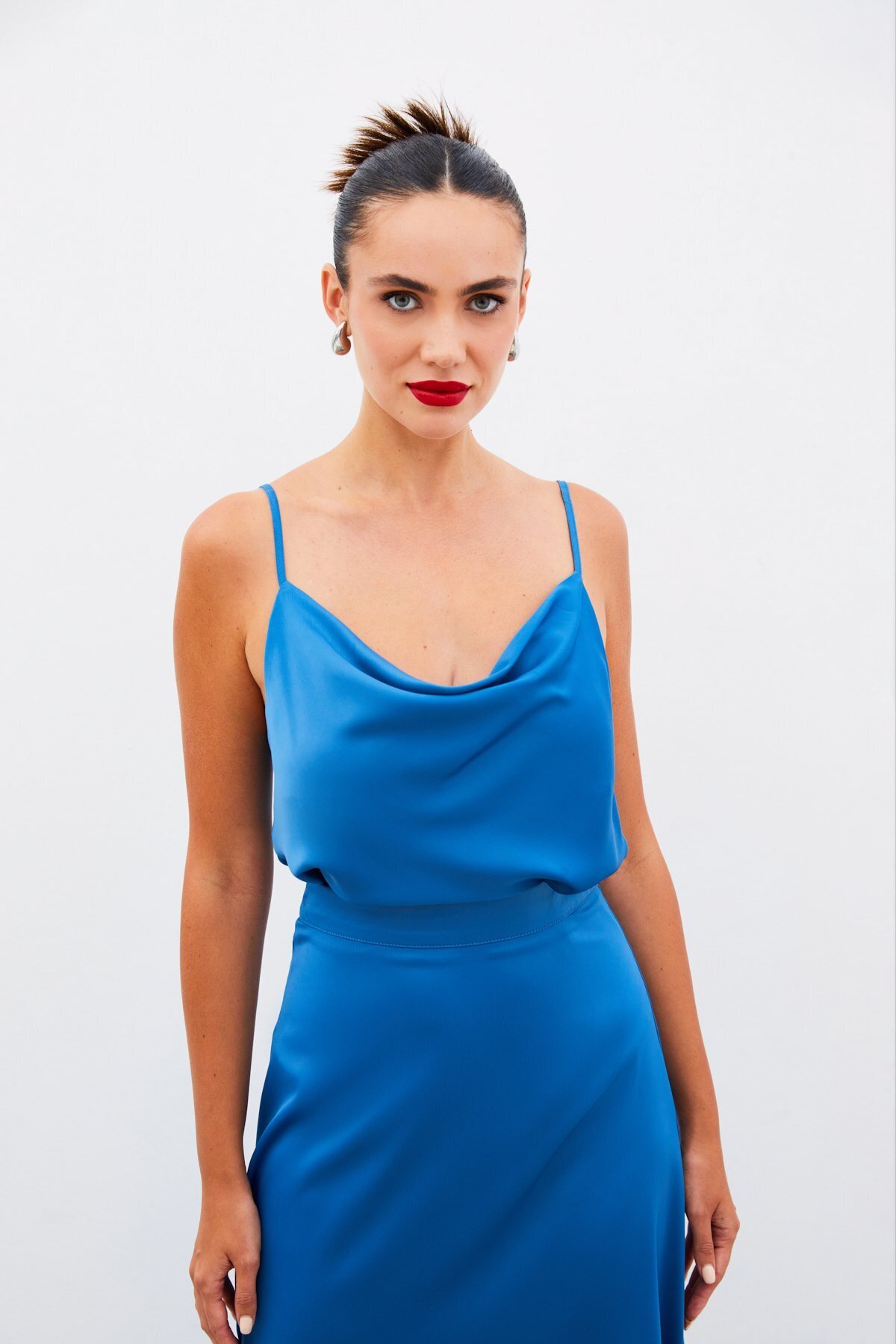 Degaje Yaka Saten Bluz - LACİVERT Degaje Yaka Saten Bluz - LACİVERT STN139KBL938 42