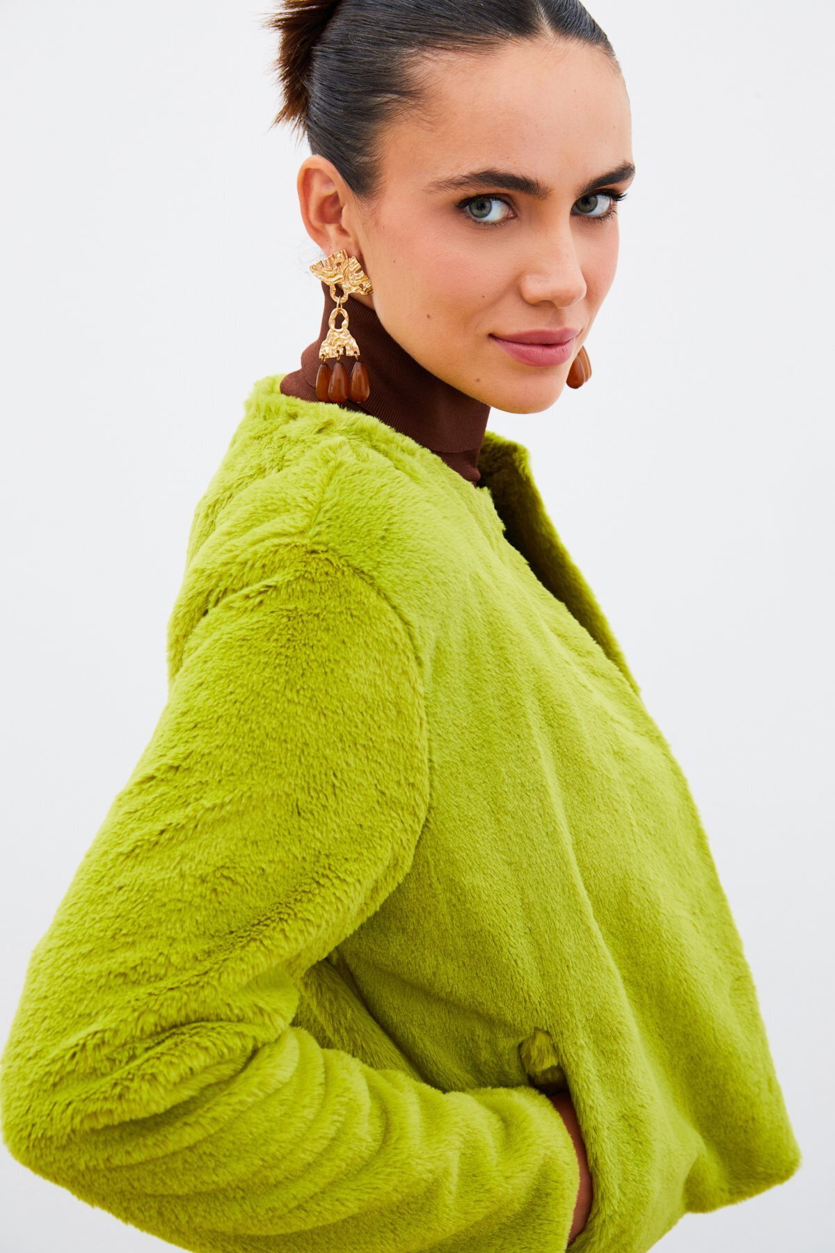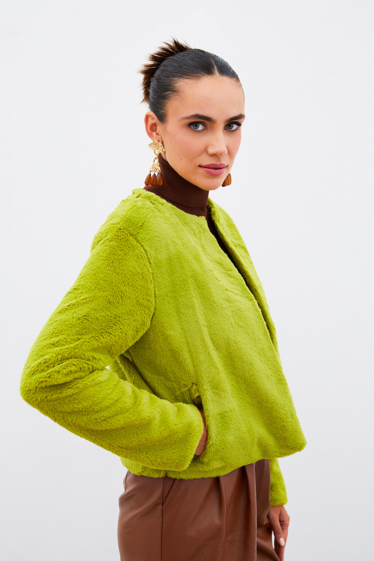 Yakasız Peluş Ceket - YEŞİL Yakasız Peluş Ceket - YEŞİL 20KCE139K263 42