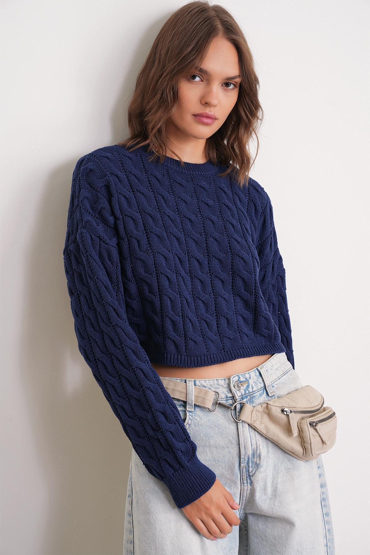 6863 Kadın Saç Örgülü Crop Triko Kazak Lacivert 6863 Kadın Saç Örgülü Crop Triko Kazak Lacivert K24KZK6863 Standart