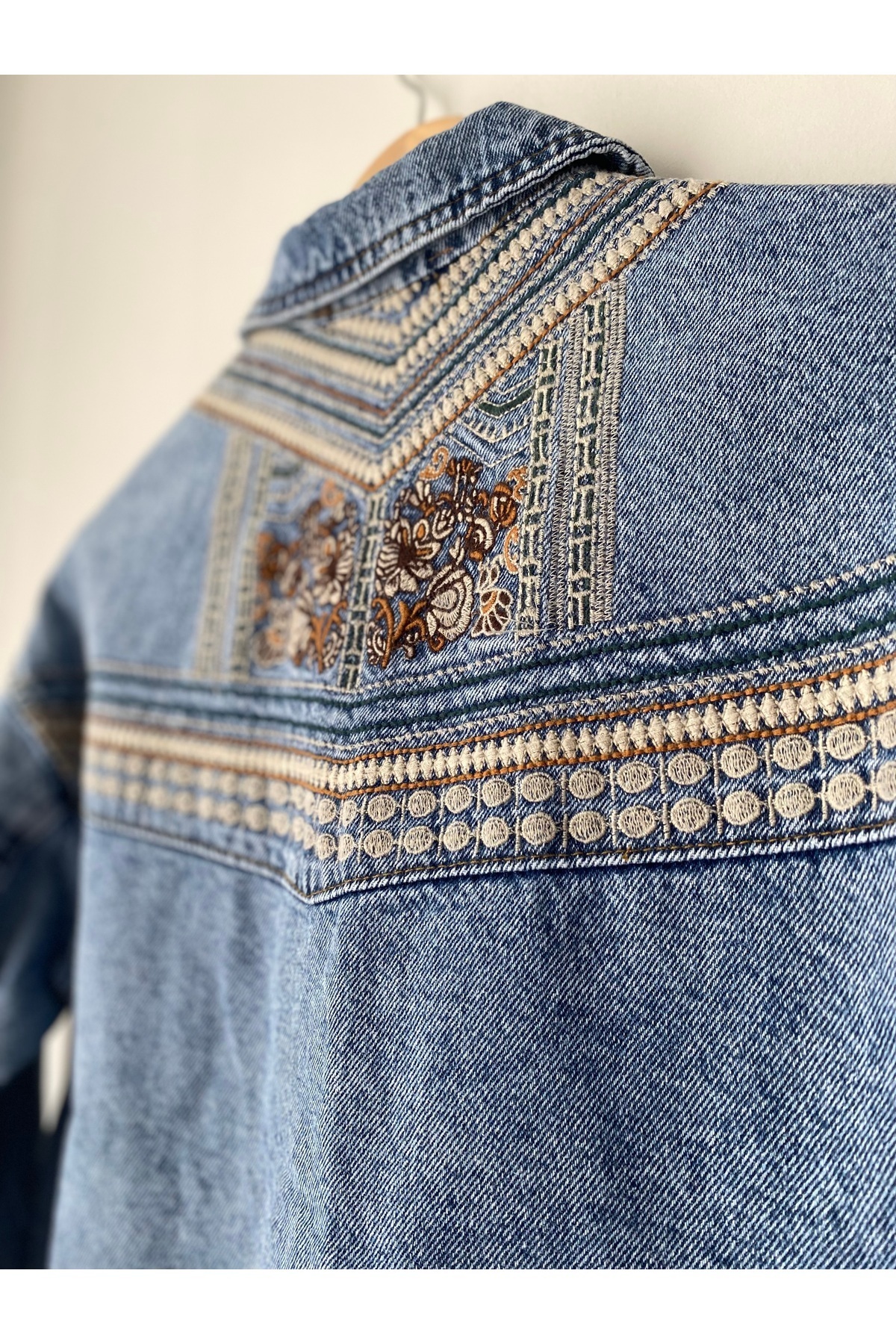 Kadın Etnik Desenli Renkli Tasarım Premium Kalite Denim Kot Ceket Kadın Etnik Desenli Renkli Tasarım Premium Kalite Denim Kot Ceket msendametnkckt01 L
