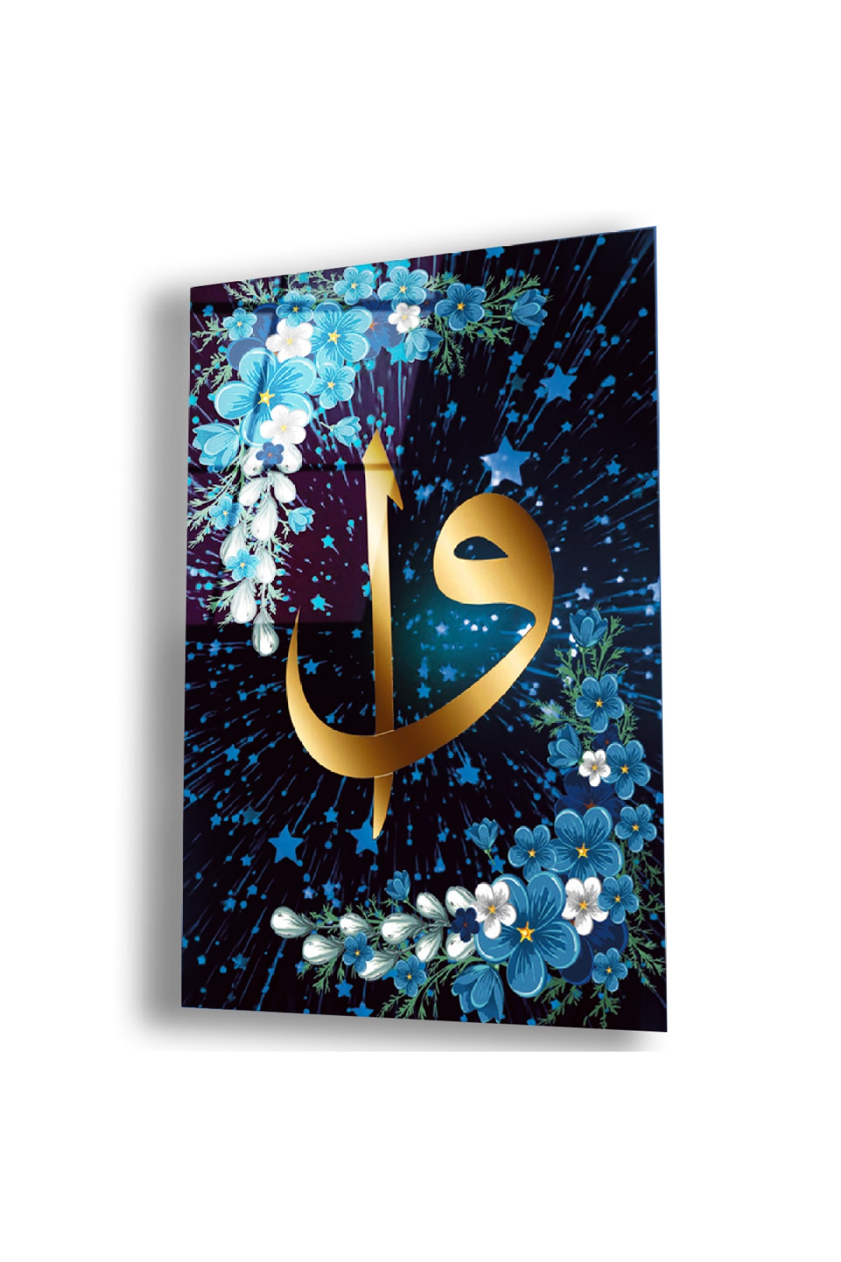 Gold Aynalı Pleksi Çerçeveli Mavi Çiçekli Elif Vav Harfi Görselli Islami Tekli Mdf Tablo Gold Aynalı Pleksi Çerçeveli Mavi Çiçekli Elif Vav Harfi Görselli Islami Tekli Mdf Tablo MPTMGP16B 50 x 70