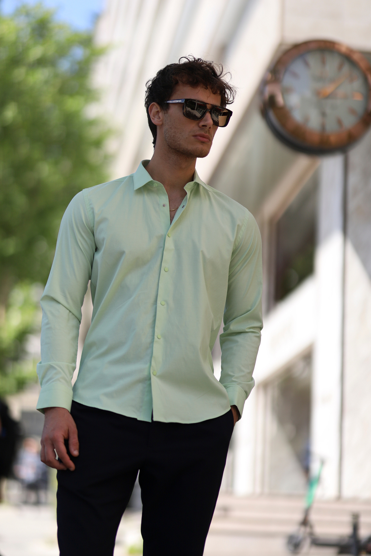 Slim Fit Çıtçıtlı Düz Likra Gömlek Slim Fit Çıtçıtlı Düz Likra Gömlek PSR4500 2XL