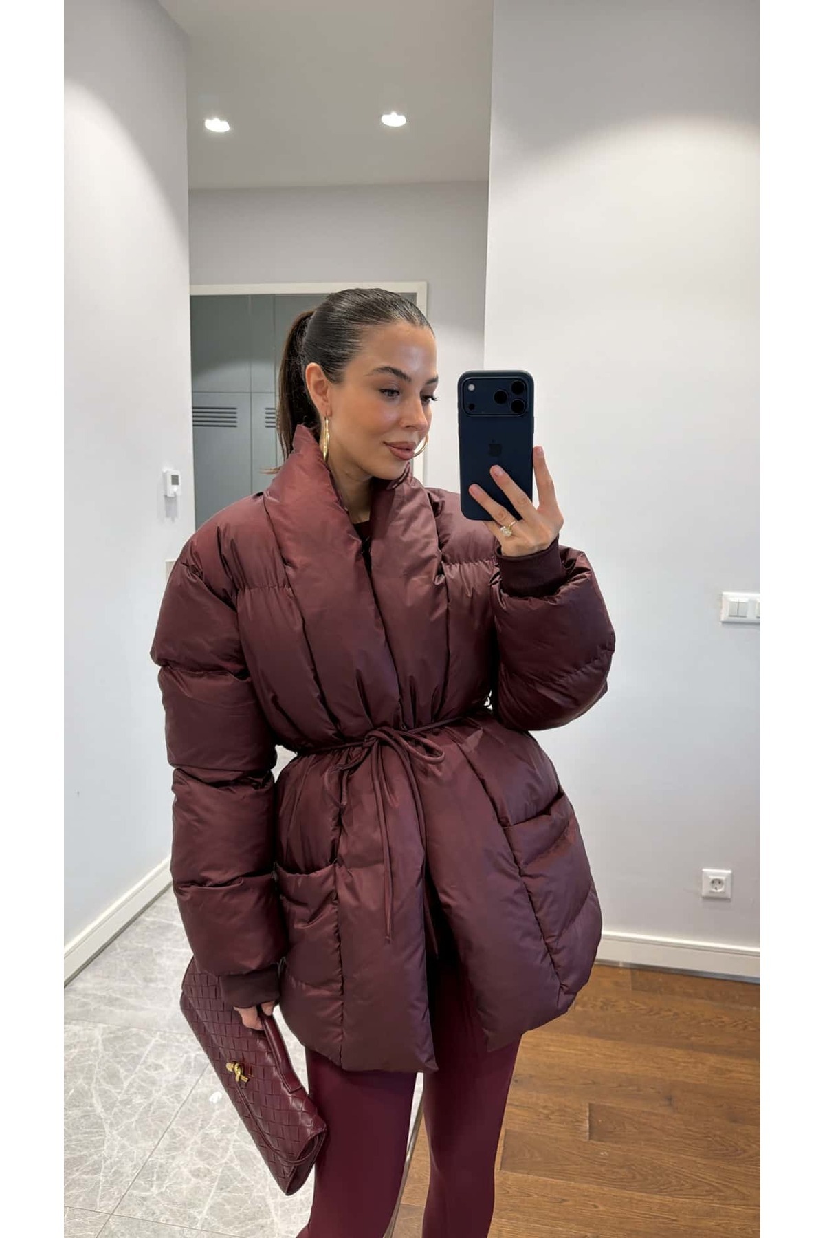 Bej Kapüşonlu Kuşak Detaylı Şişme Mont MG2179 Bej Kapüşonlu Kuşak Detaylı Şişme Mont MG2179 XL