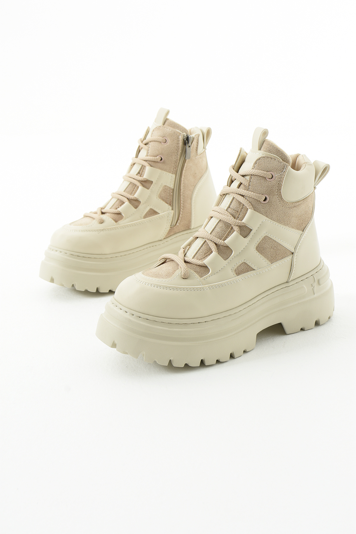 Silfa Bej - Siyah Cilt Toka Detay Bağcıklı Kadın Bot Silfa Bej - Siyah Cilt Toka Detay Bağcıklı Kadın Bot HYL560220 40