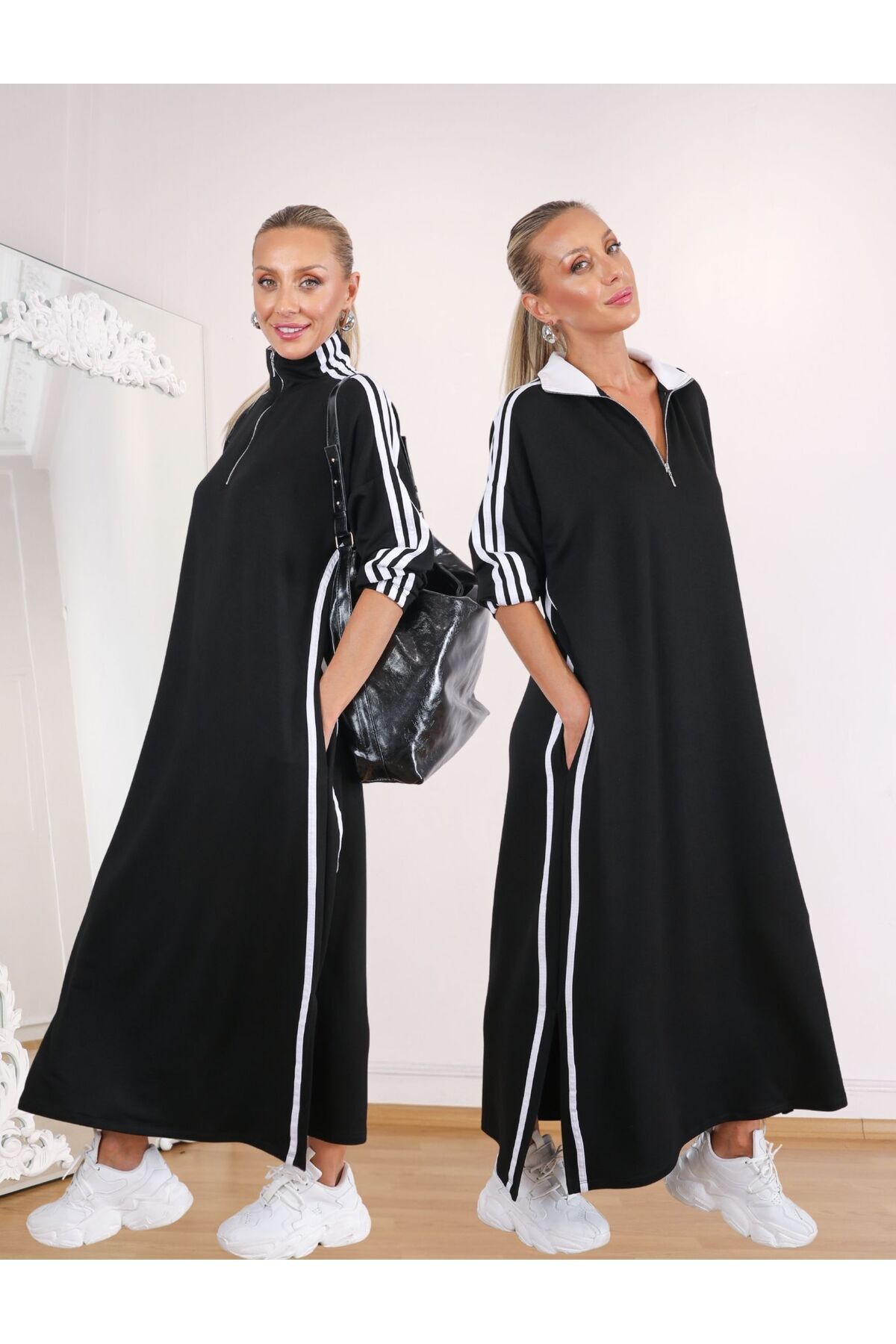 Arma Detaylı Çift Yırtmaçlı Biyeli Uzun Kollu Elbise Arma Detaylı Çift Yırtmaçlı Biyeli Uzun Kollu Elbise 281002 XL