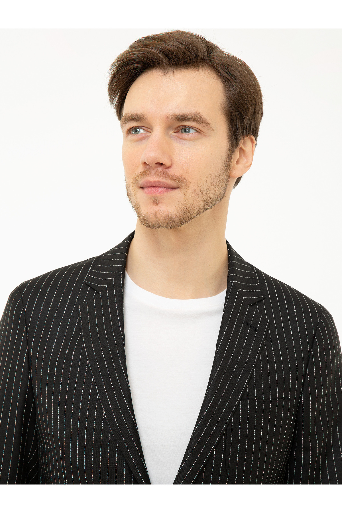 Siyah Slim Fit Keten Karışımlı Çizgili Ceket 50223286-VR046 Siyah Slim Fit Keten Karışımlı Çizgili Ceket 50223286-VR046 493660 56-6 Drop