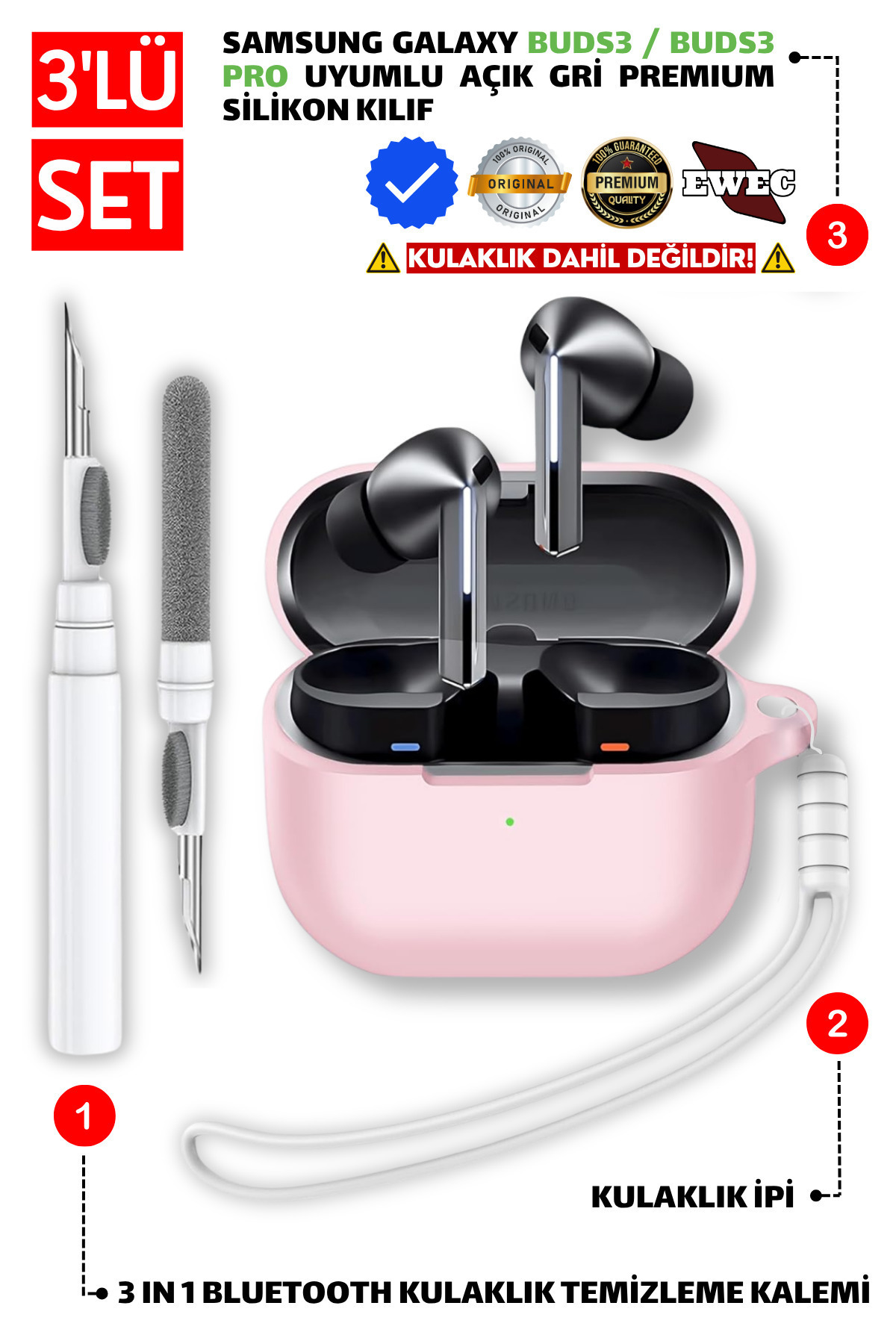 Samsung Galaxy Buds3 ve Galaxy Buds3 Pro Uyumlu Şeffaf Kılıf, Kulaklık İpi ve Temizleme Kalemi Seti Samsung Galaxy Buds3 ve Galaxy Buds3 Pro Uyumlu Şeffaf Kılıf, Kulaklık İpi ve Temizleme Kalemi Seti SGXYBUDS3S تک سایز