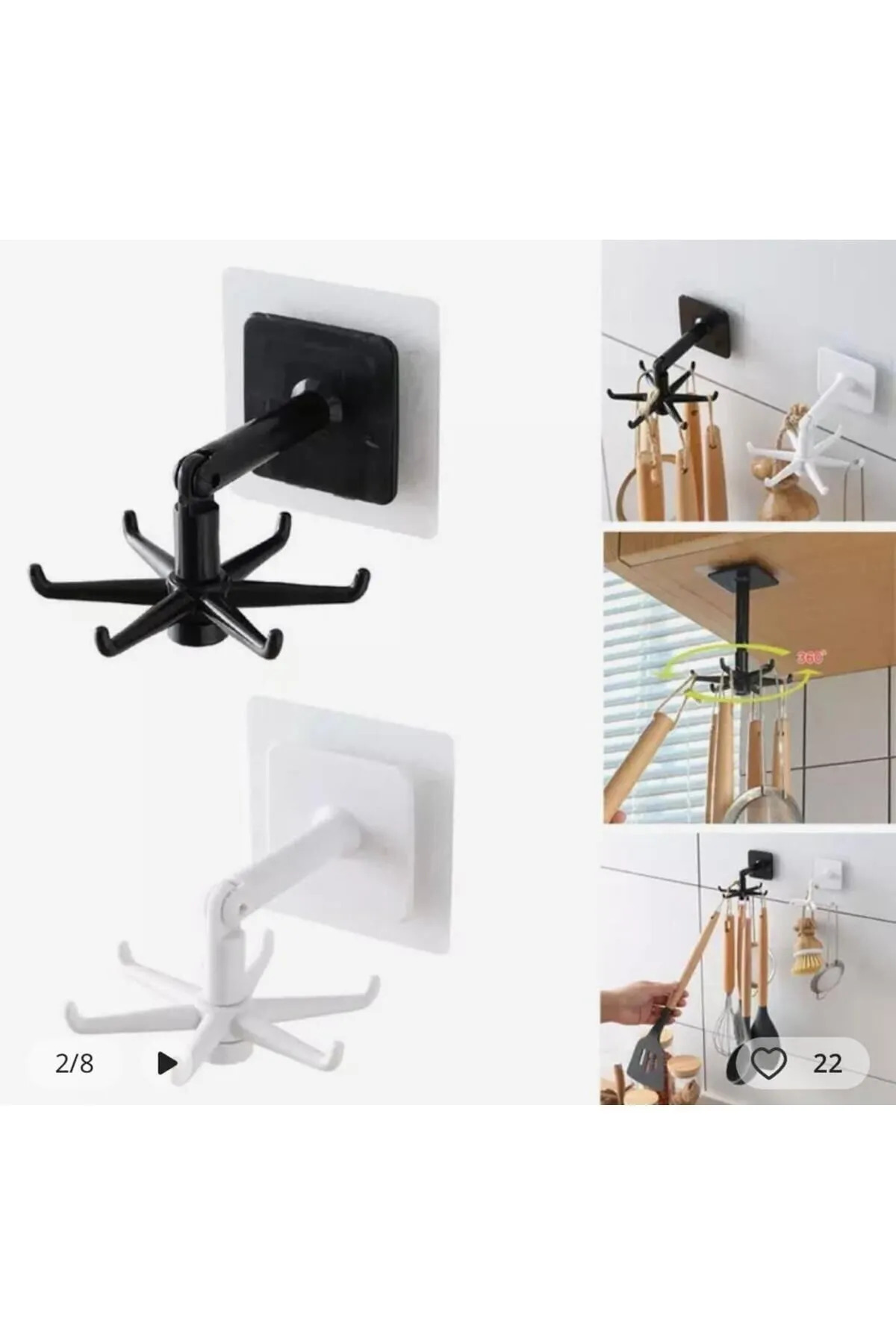 مشخصات فنی 360° Dönen Çok Amaçlı Yapışkanlı Beyaz Banyo & Mutfak Askısı – Organizer, Bardak Ve Takı Askılığı جنس پلاستیک چند تیکه تک سایز رنگ سفید مشخصات کلی