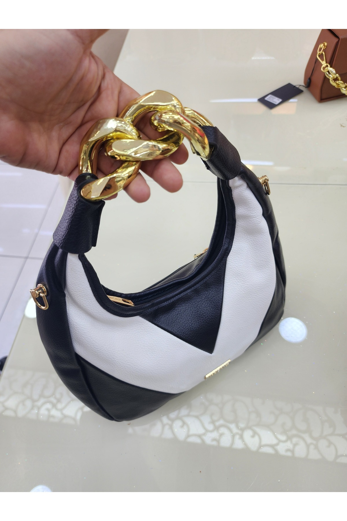 YUMUŞAK SUNİ DERİ ( ORTA BOY ) SERT MİKA GOLD ZİNCİR DETAYLI KADIN EL-OMUZ ÇANTASI YUMUŞAK SUNİ DERİ ( ORTA BOY ) SERT MİKA GOLD ZİNCİR DETAYLI KADIN EL-OMUZ ÇANTASI AR300122 تک سایز