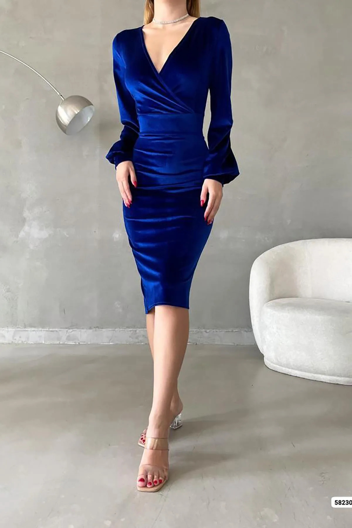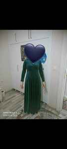 Zümrüt Yeşili Kruvaze Yaka Uzun Kol Maxi Boy Yırtmaç Detay Kadife Kumaş Elbise Zümrüt Yeşili Kruvaze Yaka Uzun Kol Maxi Boy Yırtmaç Detay Kadife Kumaş Elbise DFX581949 L