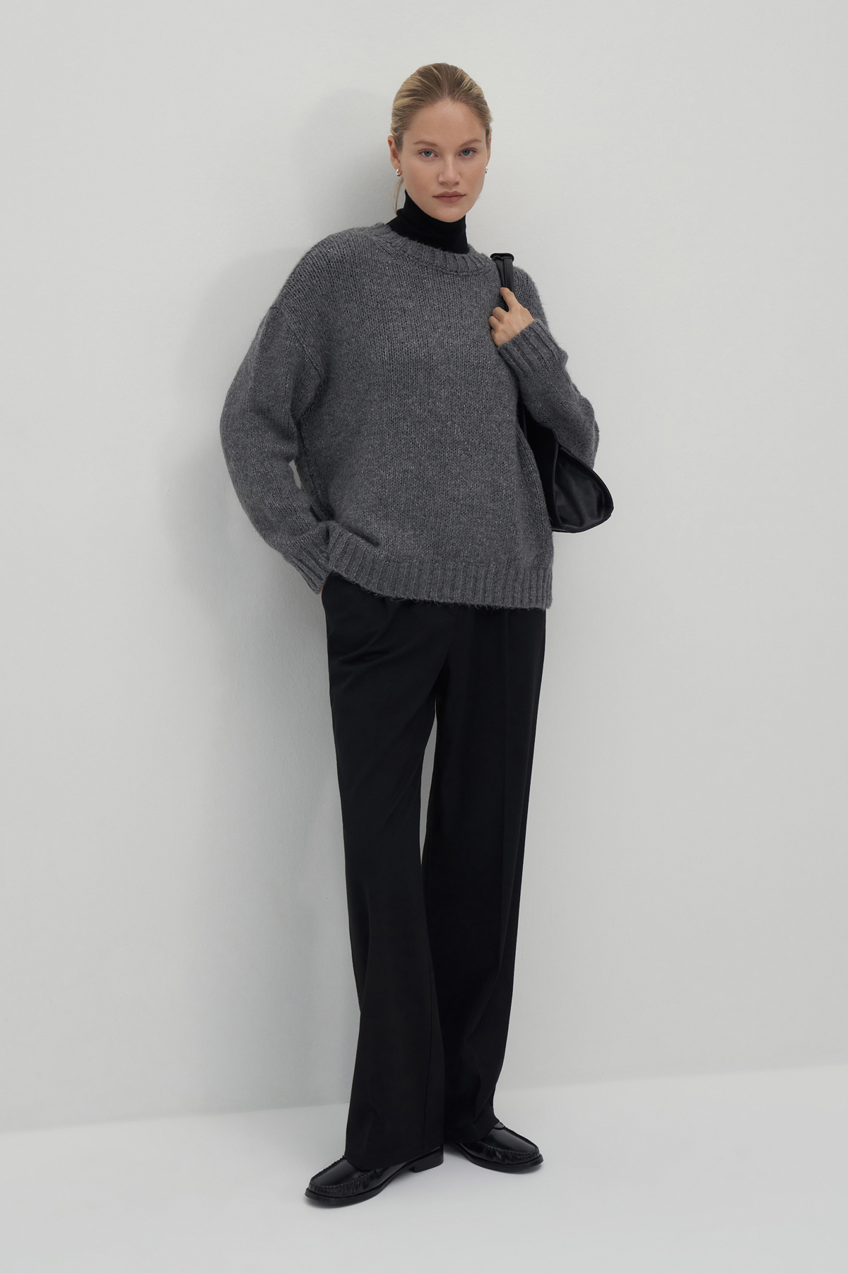 Antrasit Yün Karışımlı Örme Oversize Kazak Antrasit Yün Karışımlı Örme Oversize Kazak MTHM03 Standart