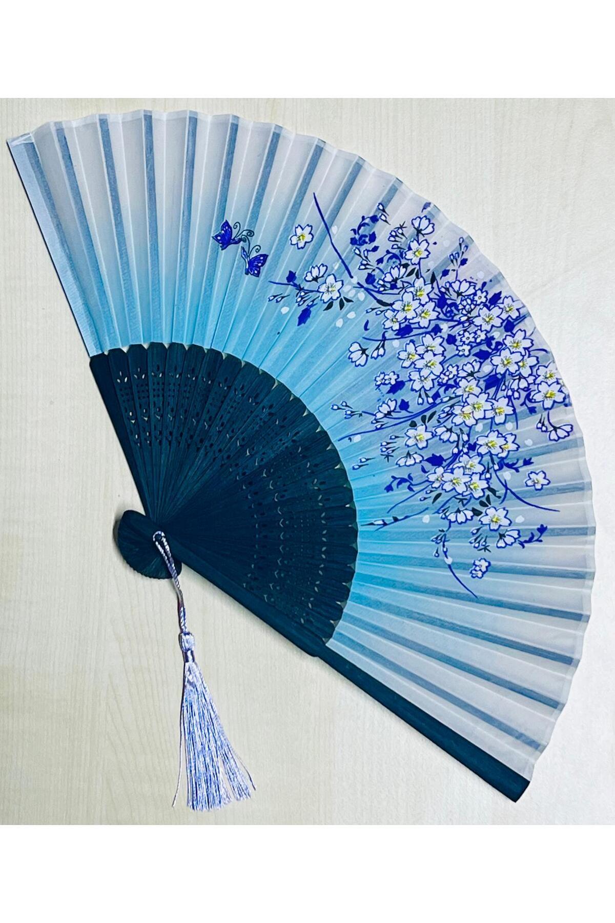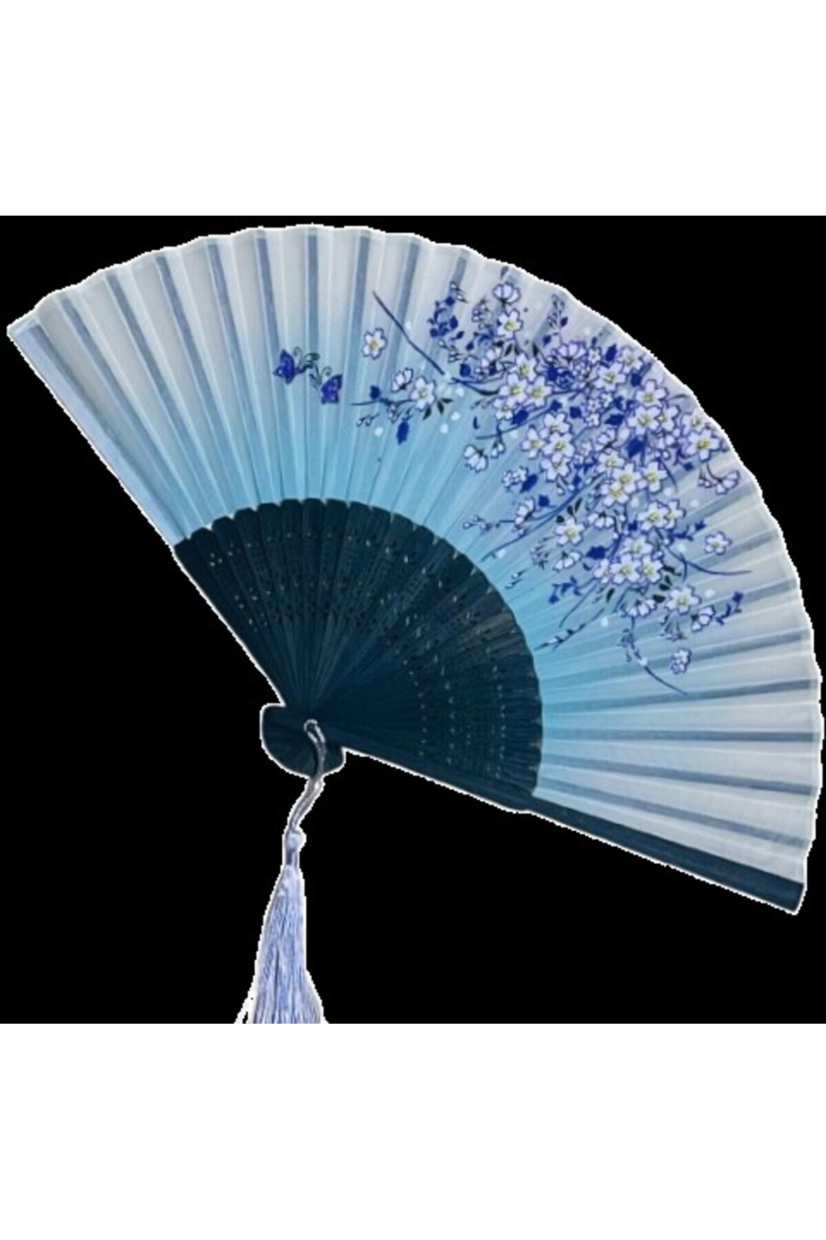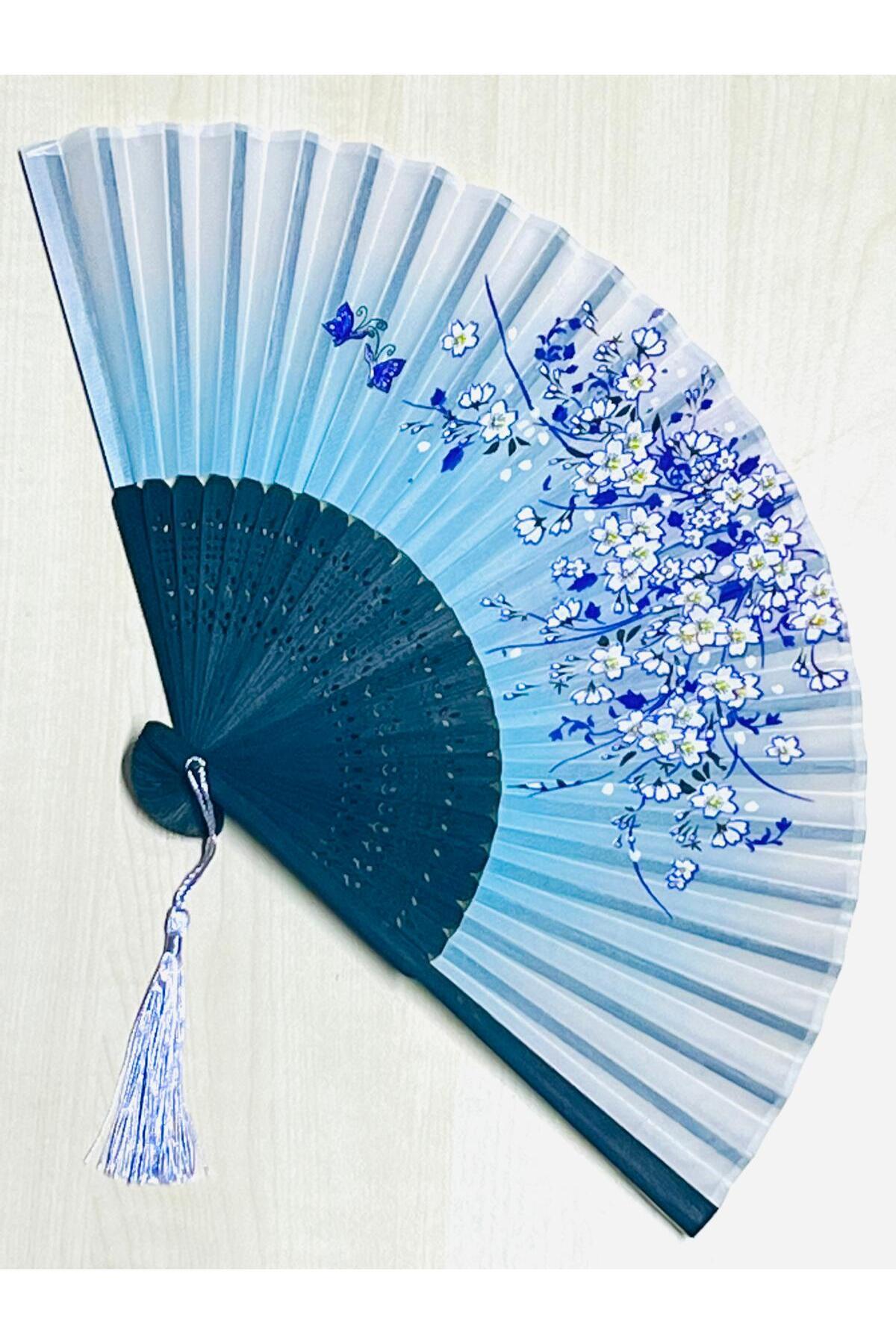 Bambu Kumaş Mavi Mor Çiçekli Yelpaze A535 Bambu Kumaş Mavi Mor Çiçekli Yelpaze A535 تک سایز
