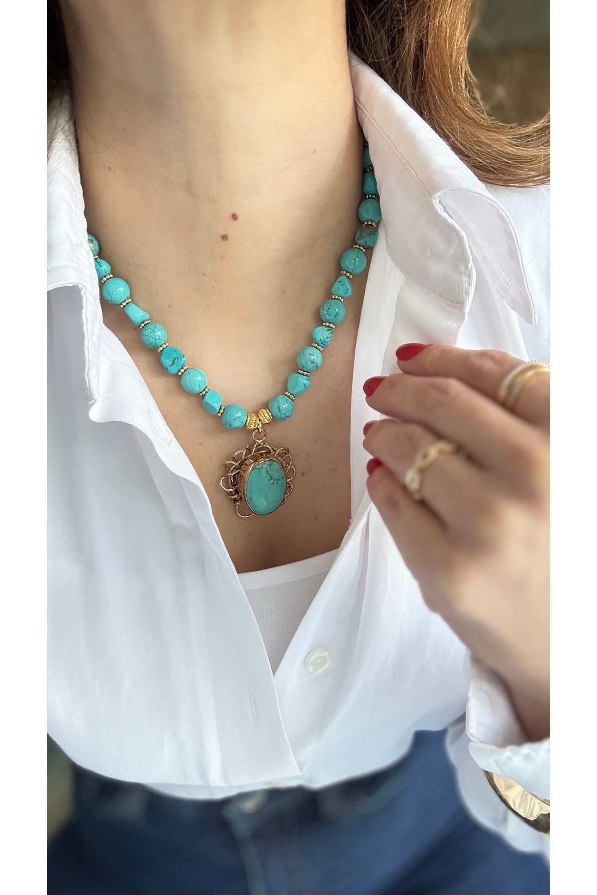 İnce Firuze (Turkuaz) Doğal Taşlı Kolye İnce Firuze (Turkuaz) Doğal Taşlı Kolye incefiruzekolyeüstkalite تک سایز