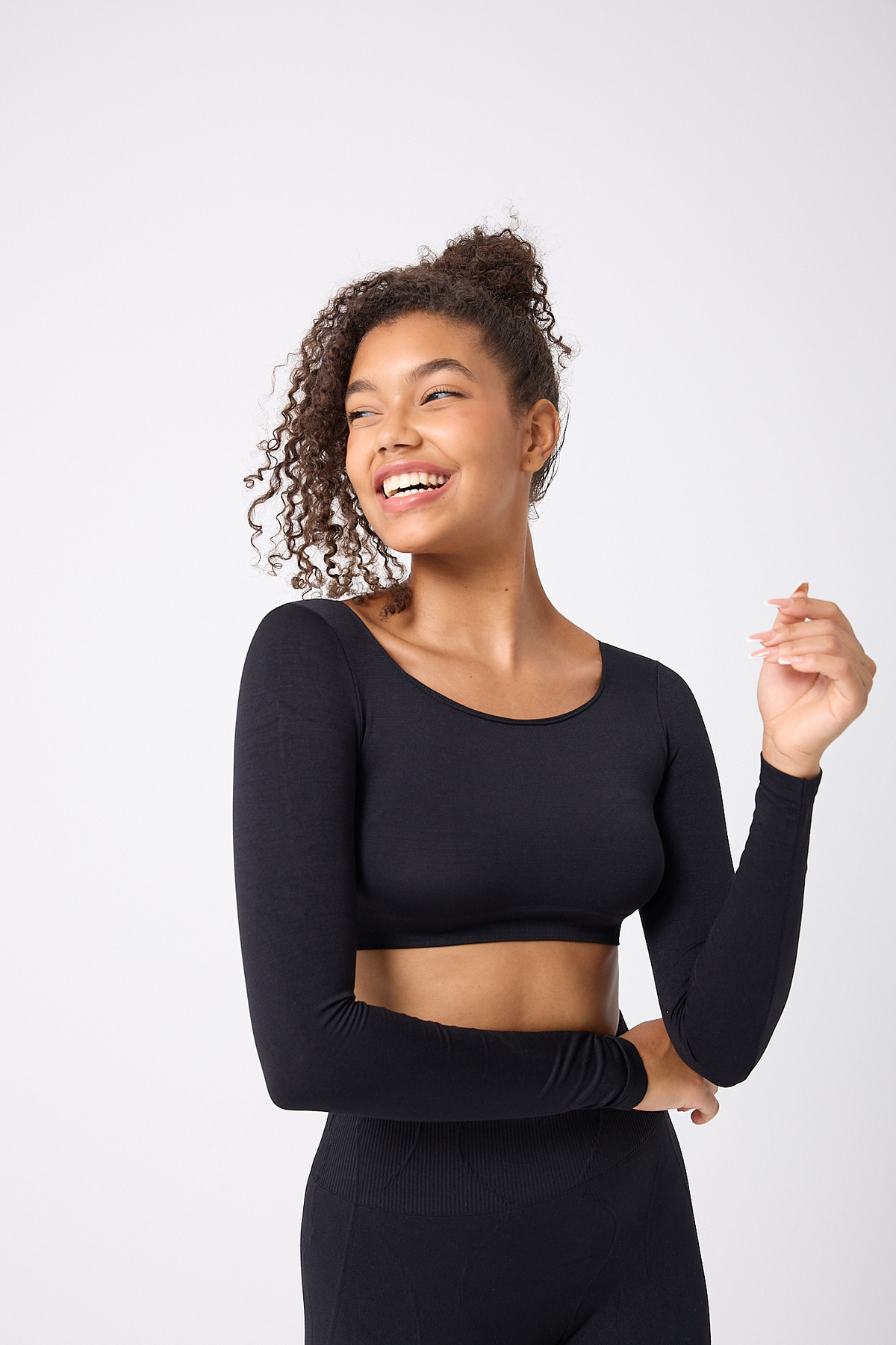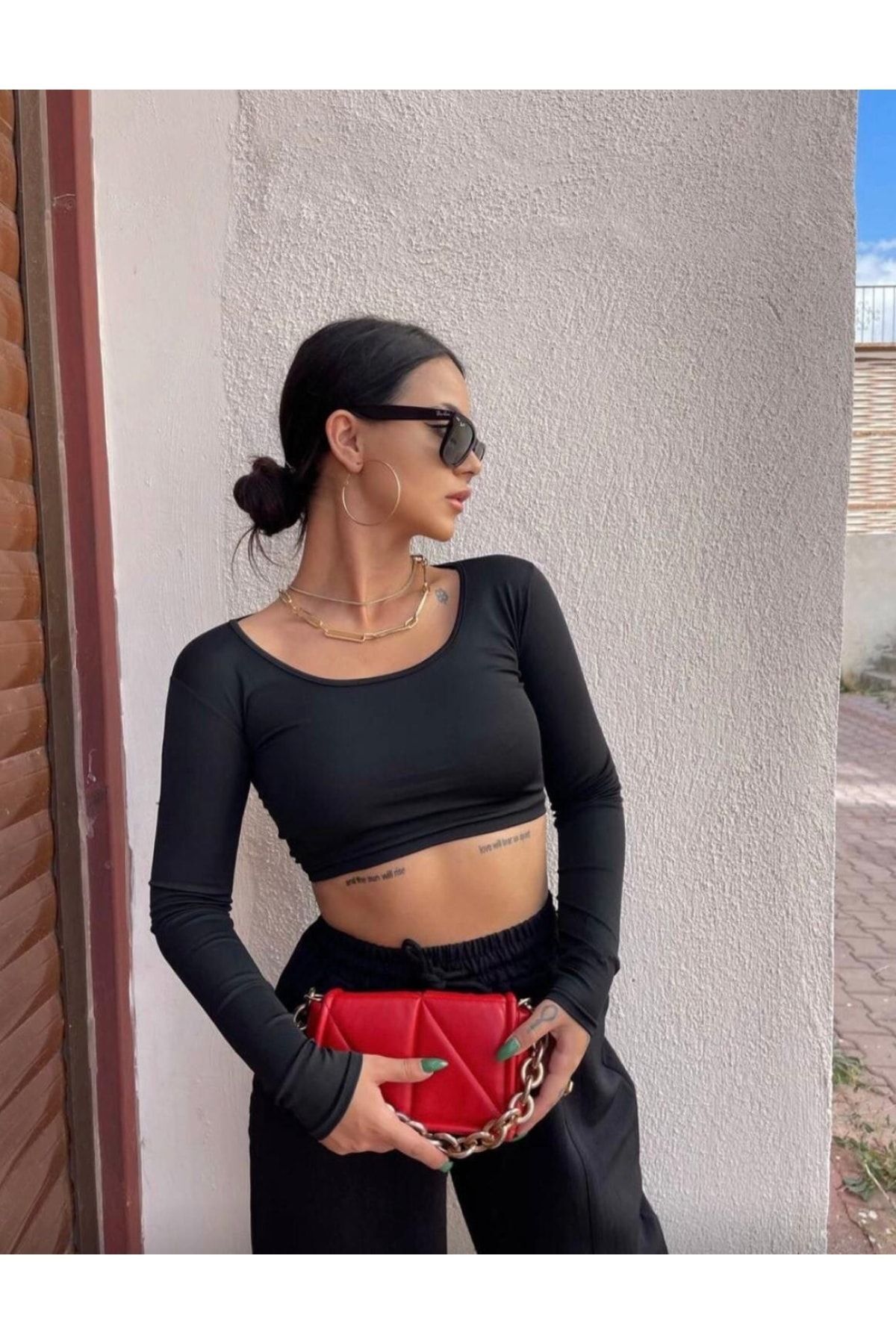 Gri Melanj Uzun Kollu Crop Body Gri Melanj Uzun Kollu Crop Body BLZ0306 M