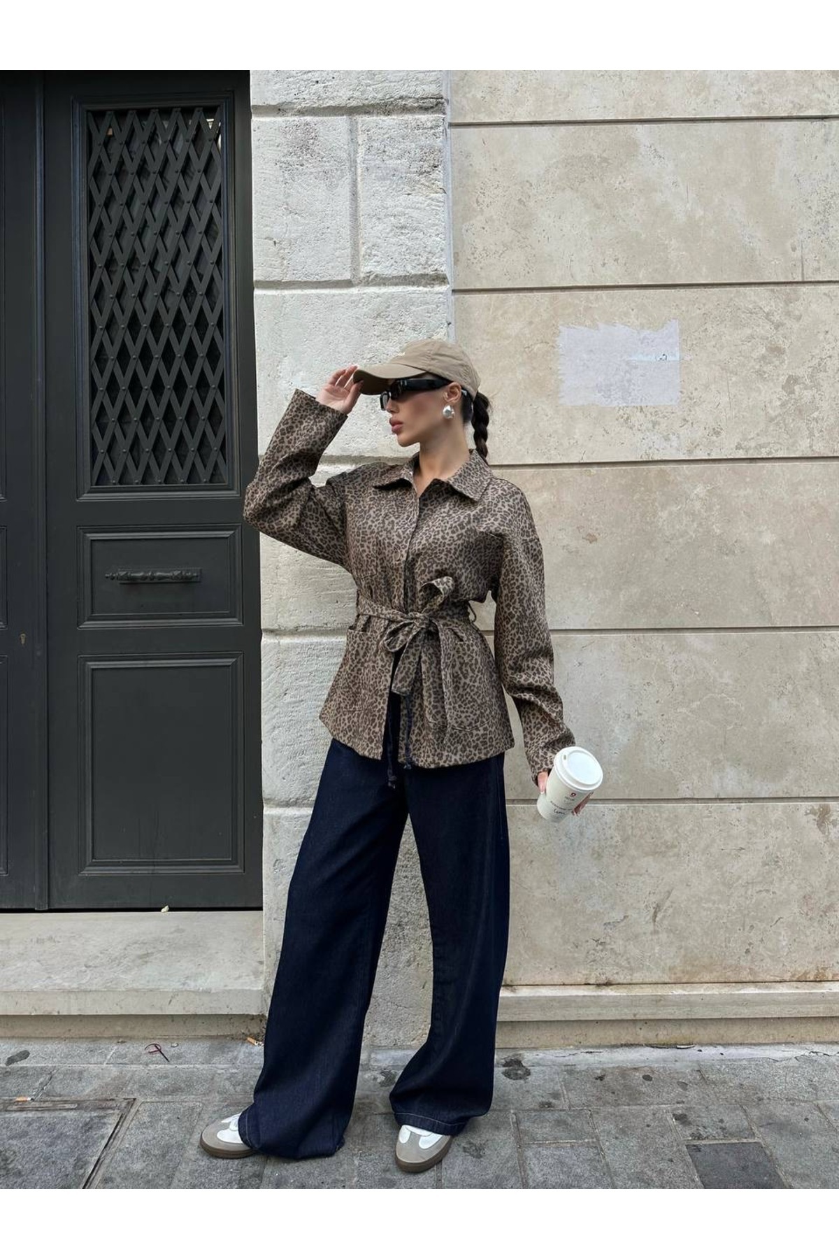 LEOPARLI KUŞAKLI GÖMLEK CEKET LEOPARLI KUŞAKLI GÖMLEK CEKET HFK508028 L