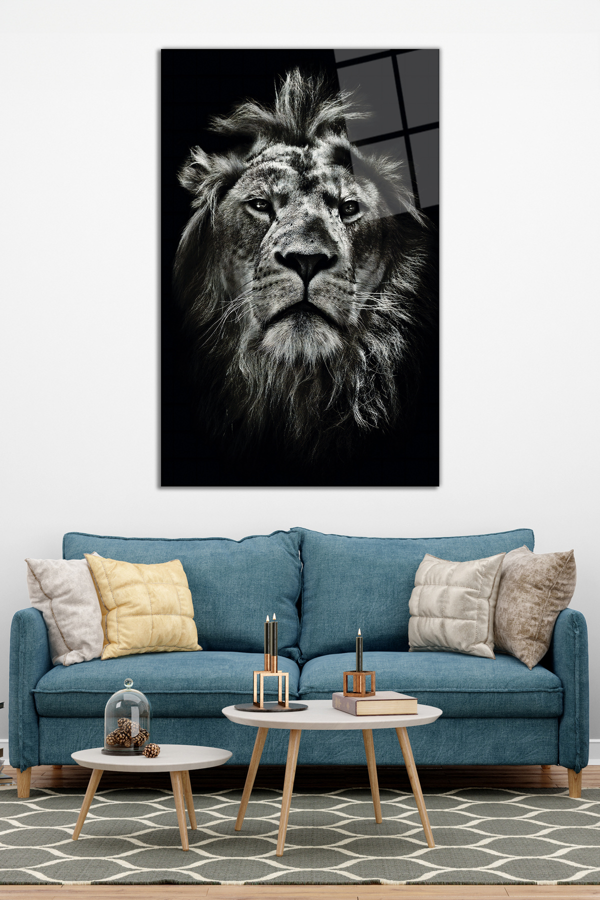 Siyah Beyaz Vahşi Aslan Portresi Cam Tablo, Modern Ev ve Ofis Dekoru, Hediyelik Duvar Dekorasyonu Siyah Beyaz Vahşi Aslan Portresi Cam Tablo, Modern Ev ve Ofis Dekoru, Hediyelik Duvar Dekorasyonu vosevu10849 105 x 70
