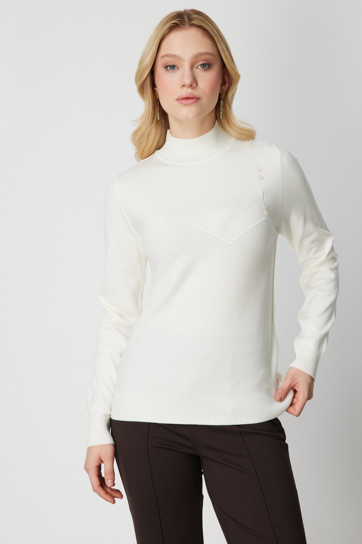 Düğme Detaylı Fitilli Triko Bluz Düğme Detaylı Fitilli Triko Bluz 25K.ON.KZK.45325.01 L