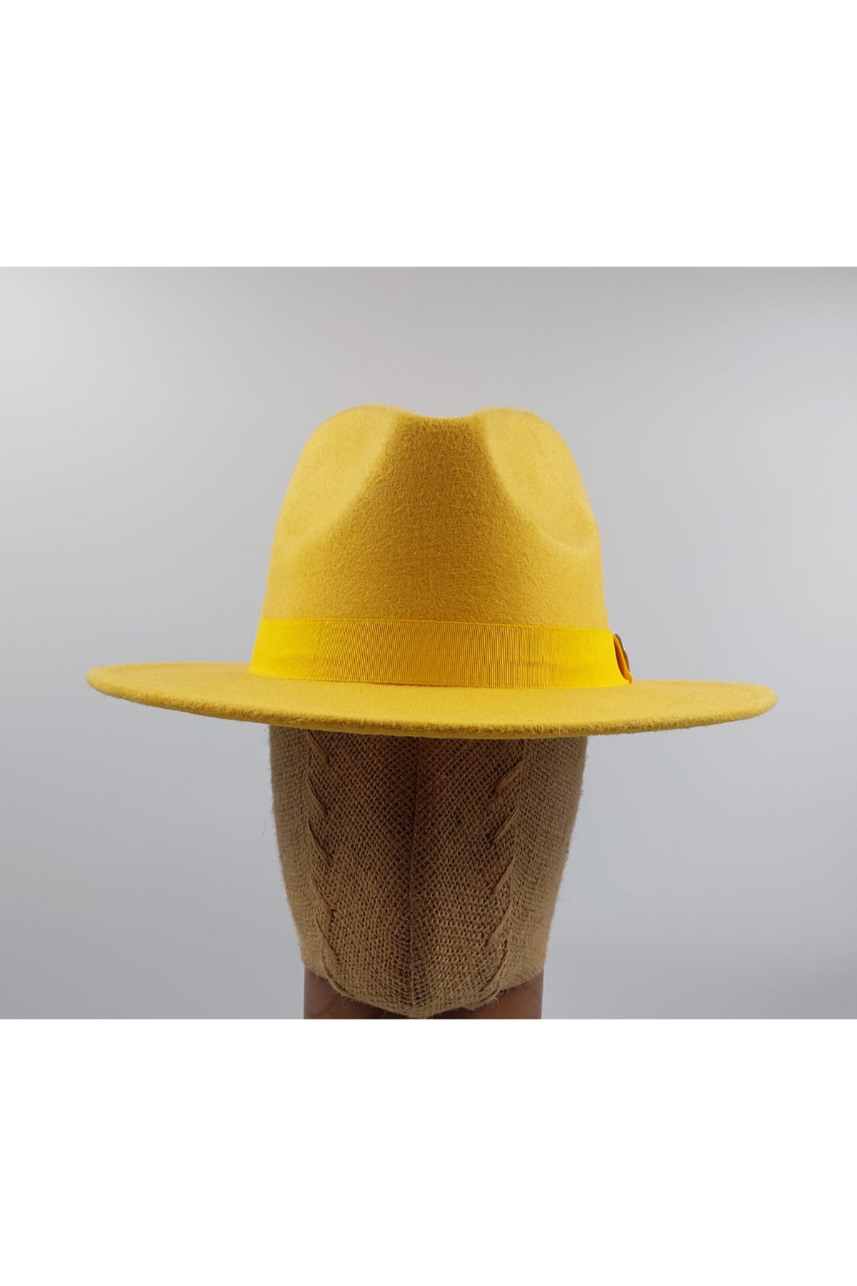 Sarı Metal Düğme Detaylı Panama Fötr Şapka Sarı Metal Düğme Detaylı Panama Fötr Şapka MRFTR25-10 57-59