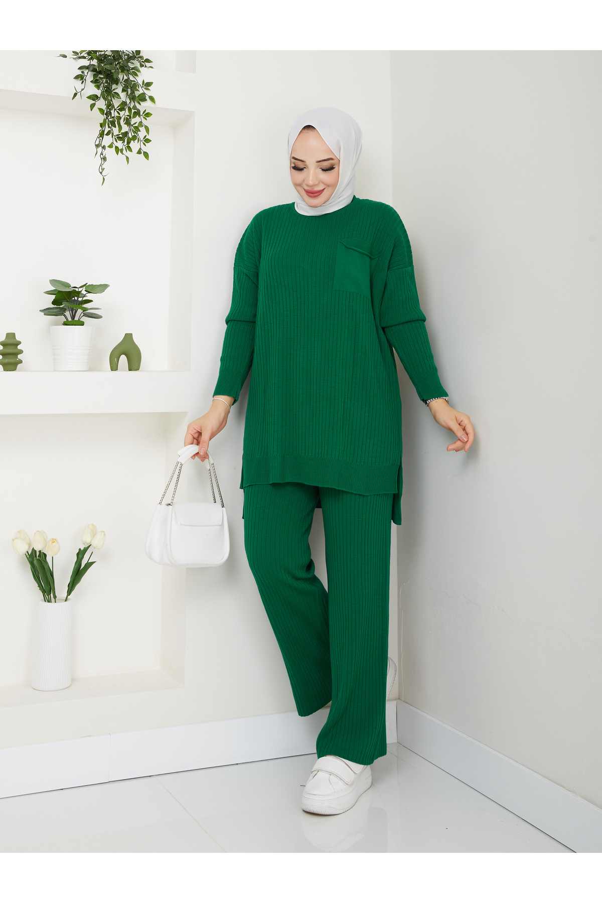Harika Fitil Detaylı Triko Rahat Ve Şık Pantolonlu İkili Takım Harika Fitil Detaylı Triko Rahat Ve Şık Pantolonlu İkili Takım T3406 تک سایز