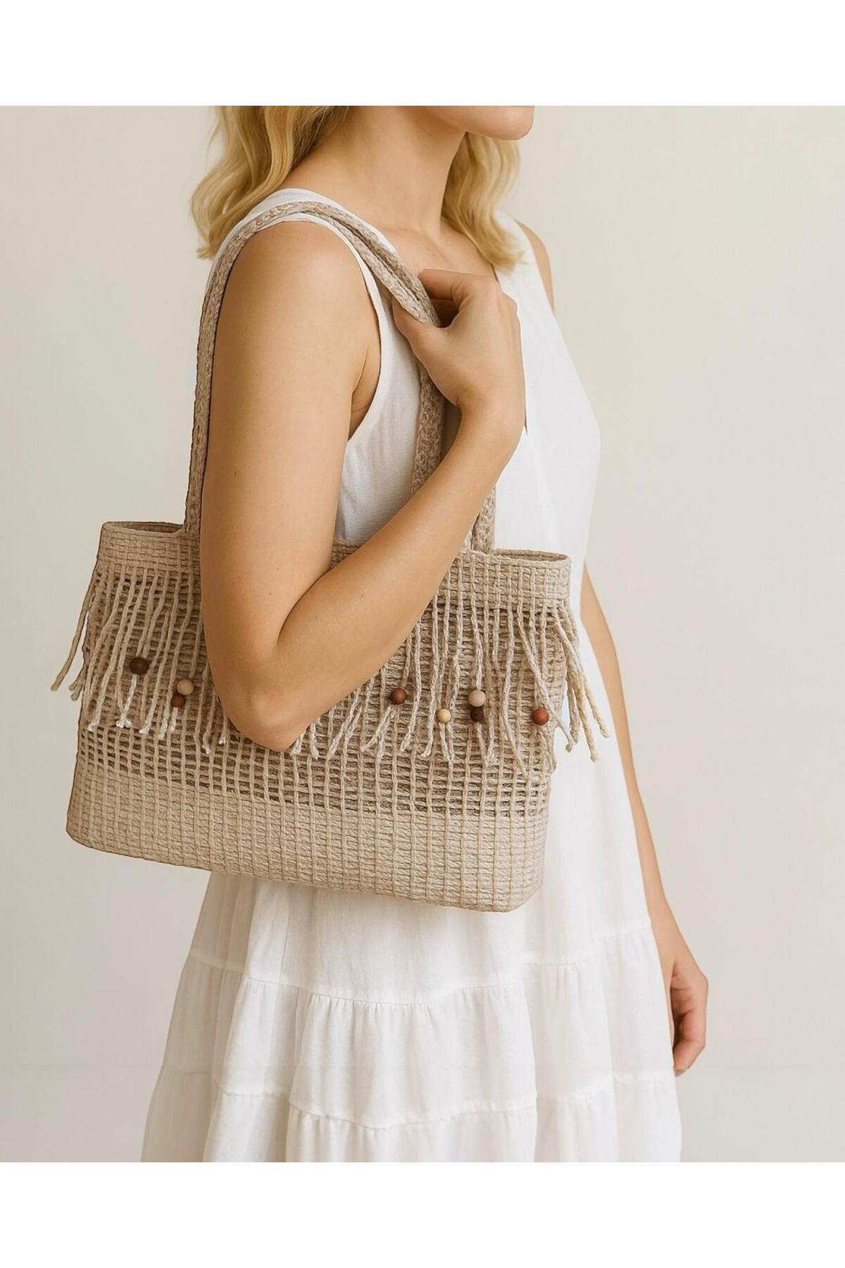 Polyester Macrome Astarlı Polyester Macrome Kol Çantasi(29CM*16CM) Polyester Macrome Astarlı Polyester Macrome Kol Çantasi(29CM*16CM) Krem Rengi Kısa Uzun Saplı Kol Çantası AA