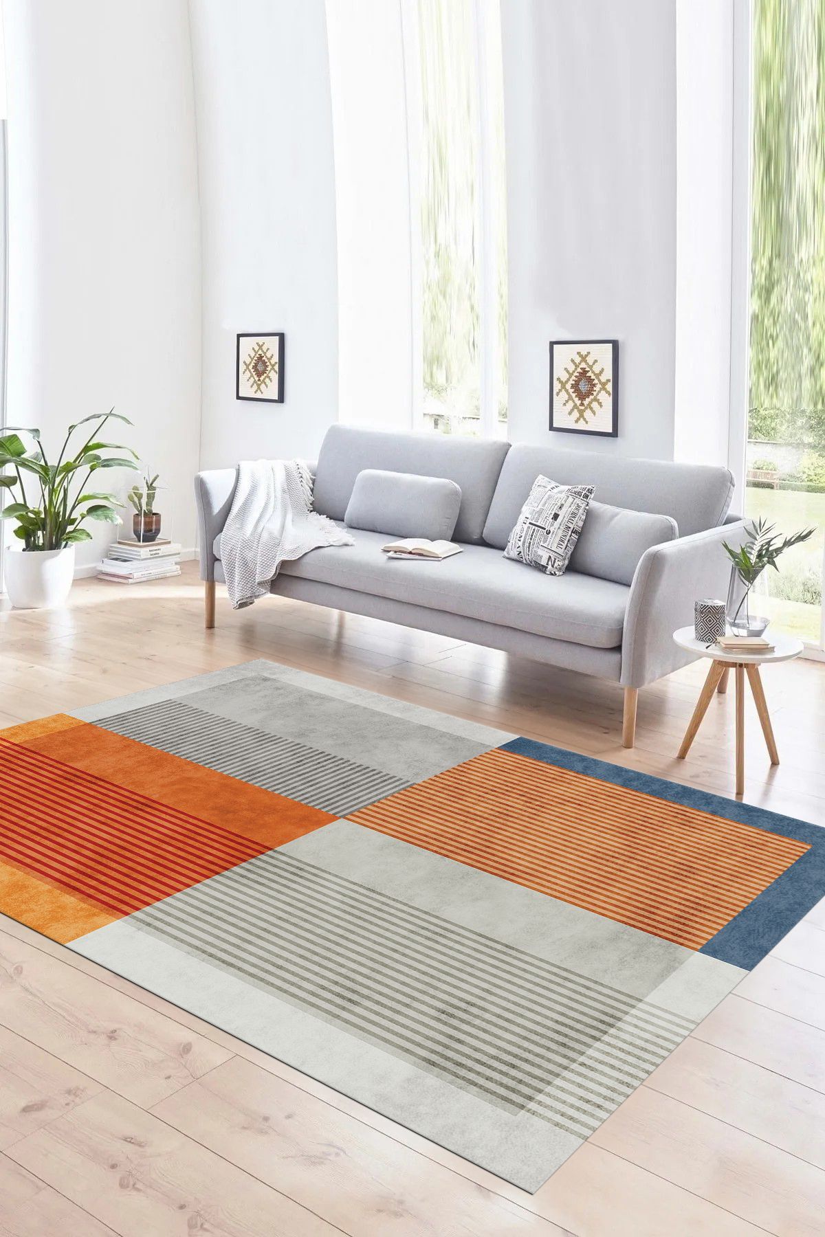 Baskılı Modern Çizgili Desen Yıkanabilir Kaymaz Taban Yolluk Mutfak Salon Halısı Baskılı Modern Çizgili Desen Yıkanabilir Kaymaz Taban Yolluk Mutfak Salon Halısı MODERN-171 160 x 230
