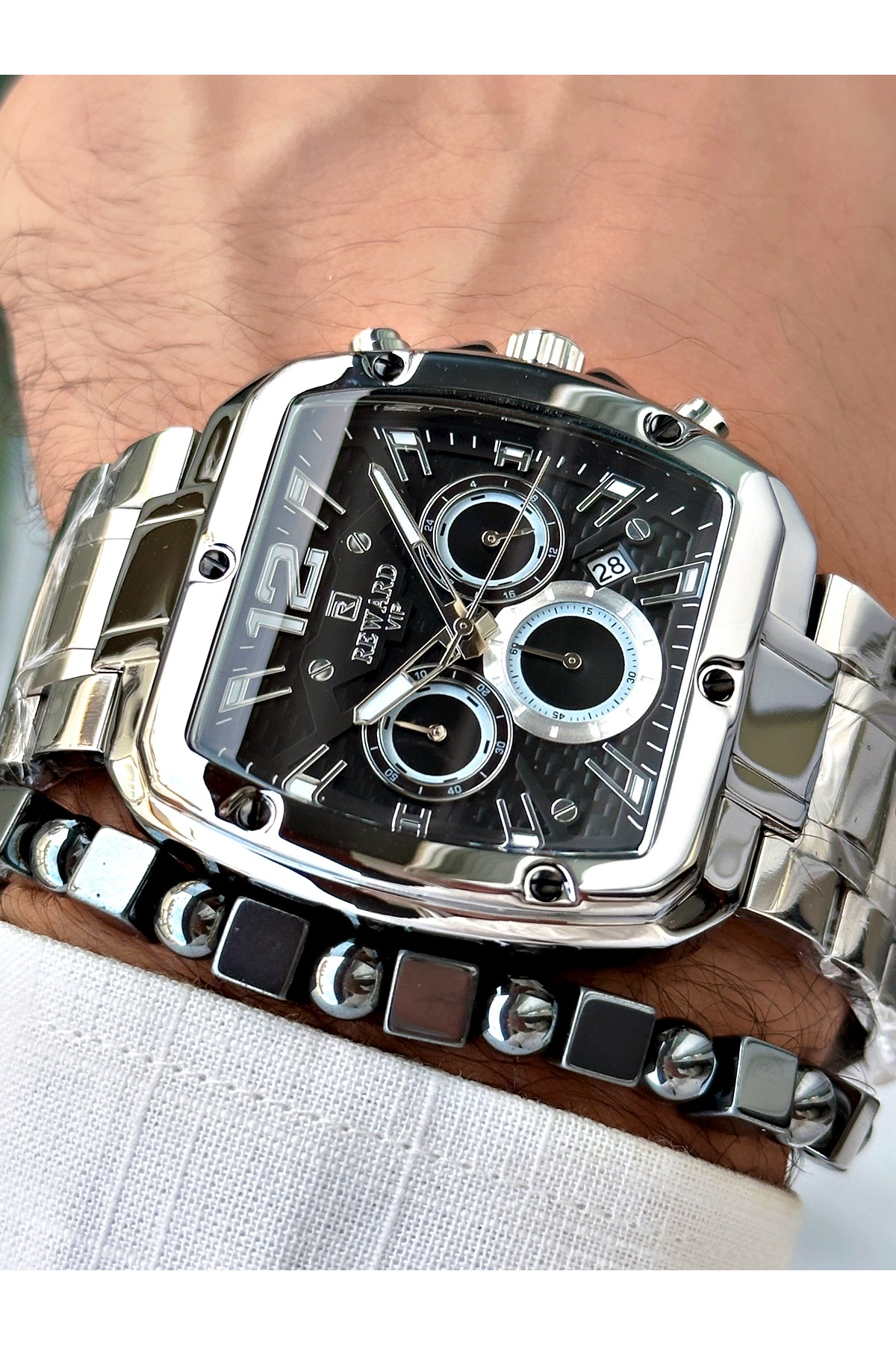 Gümüş Renk Kare Klasik Çelik Kordon Erkek Kol Saati + BİLEKLİK Gümüş Renk Kare Klasik Çelik Kordon Erkek Kol Saati + BİLEKLİK FFF08 تک سایز