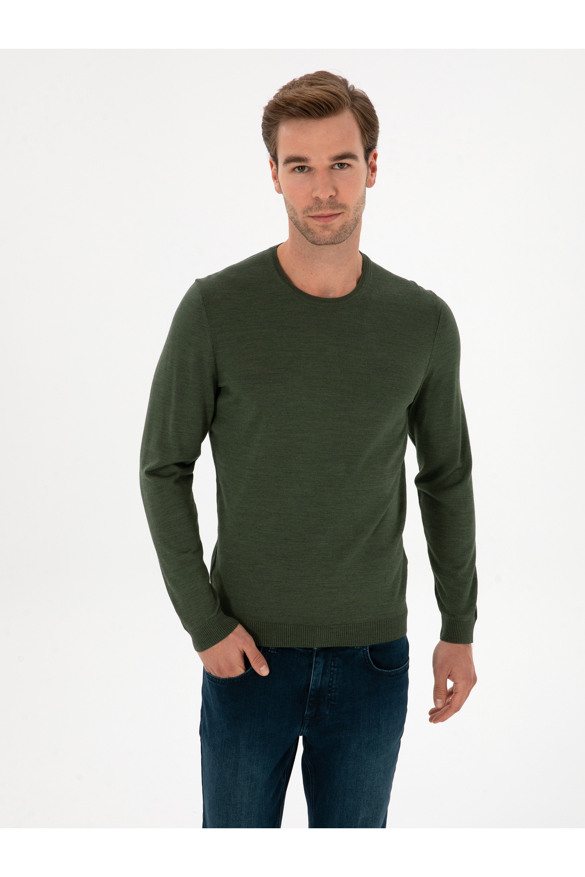 Haki Slim Fit Bisiklet Yaka Triko Kazak 50258883-VR027 Haki Slim Fit Bisiklet Yaka Triko Kazak 50258883-VR027 663531 3XL