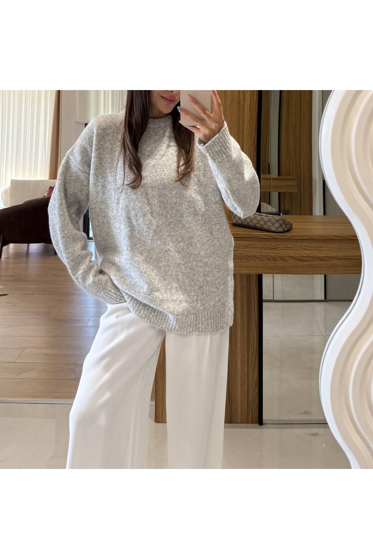 Ekru Bisiklet Yaka Örme Triko Kazak Ekru Bisiklet Yaka Örme Triko Kazak Jagra0727 L