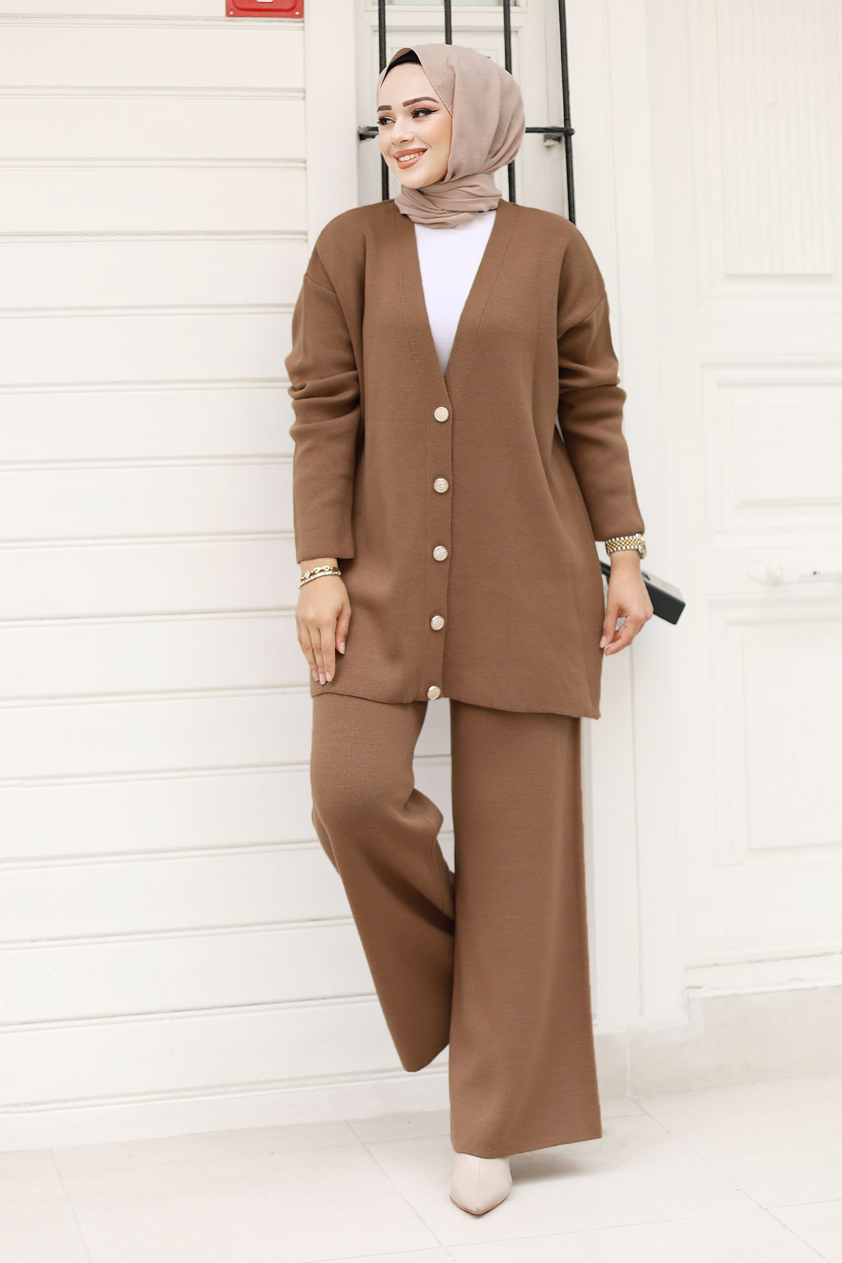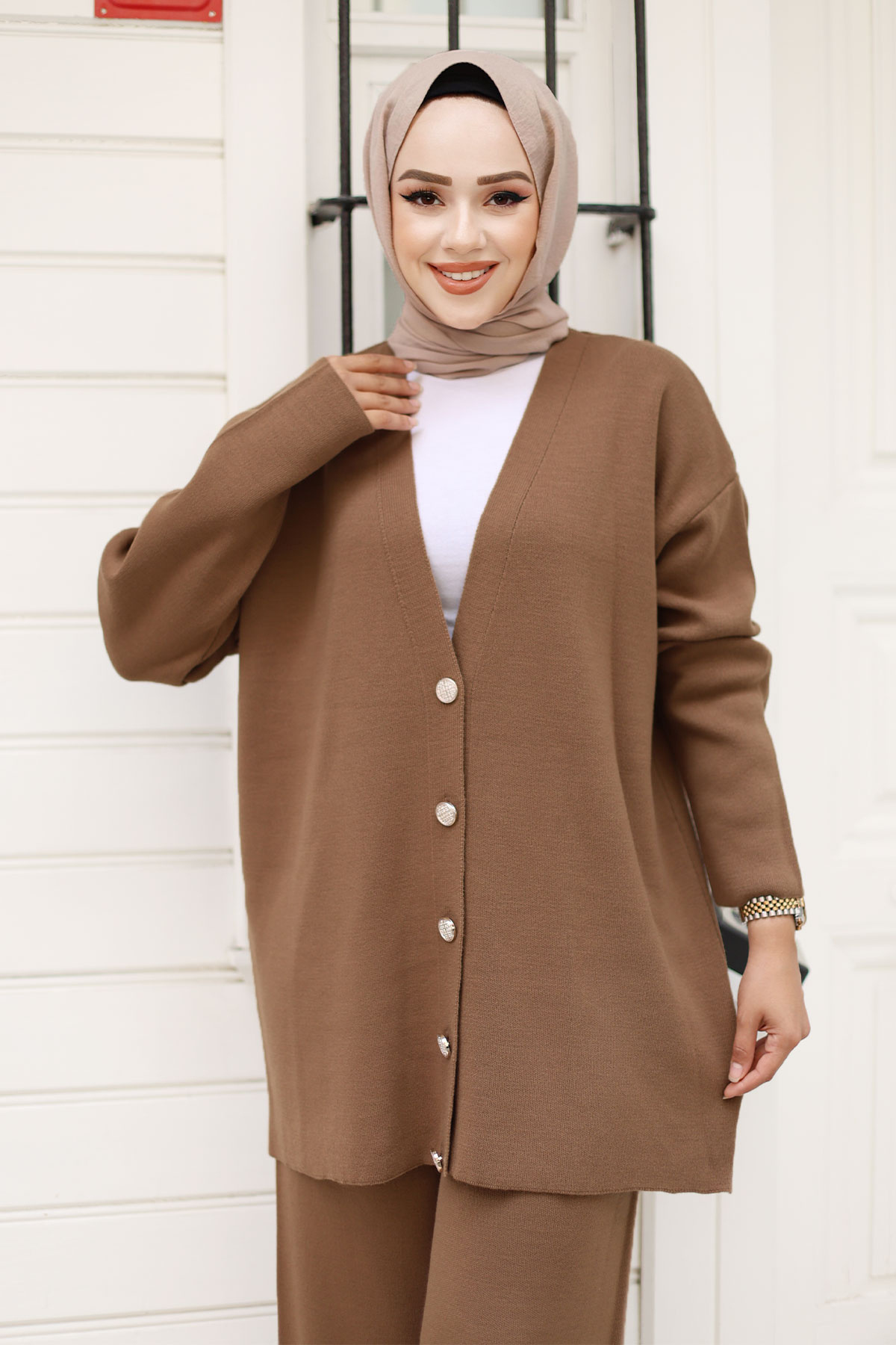Düğmesi Taşlı Triko Hırka Takım TSD240932 Sütlü Kahve Düğmesi Taşlı Triko Hırka Takım TSD240932 Sütlü Kahve تک سایز