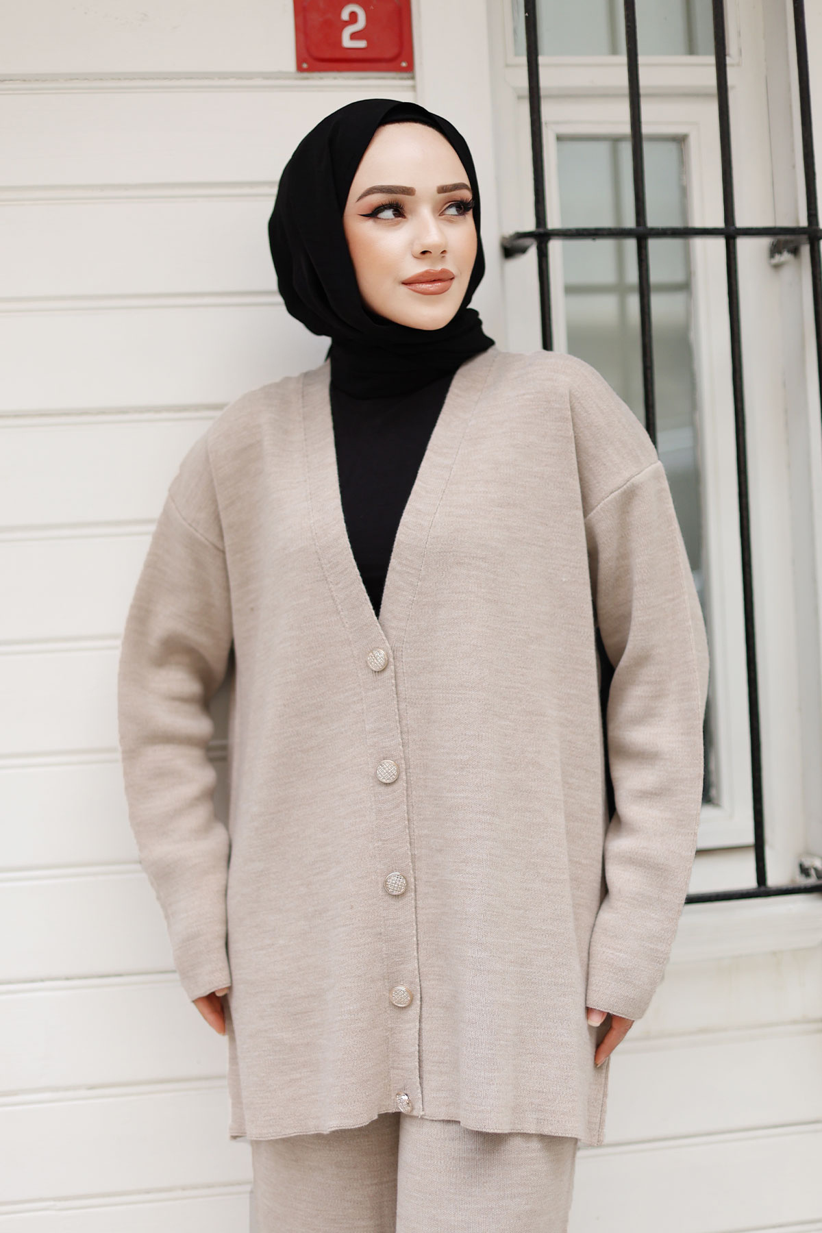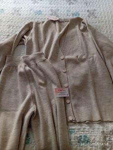 Düğmesi Taşlı Triko Hırka Takım TSD240932 Bej Düğmesi Taşlı Triko Hırka Takım TSD240932 Bej تک سایز