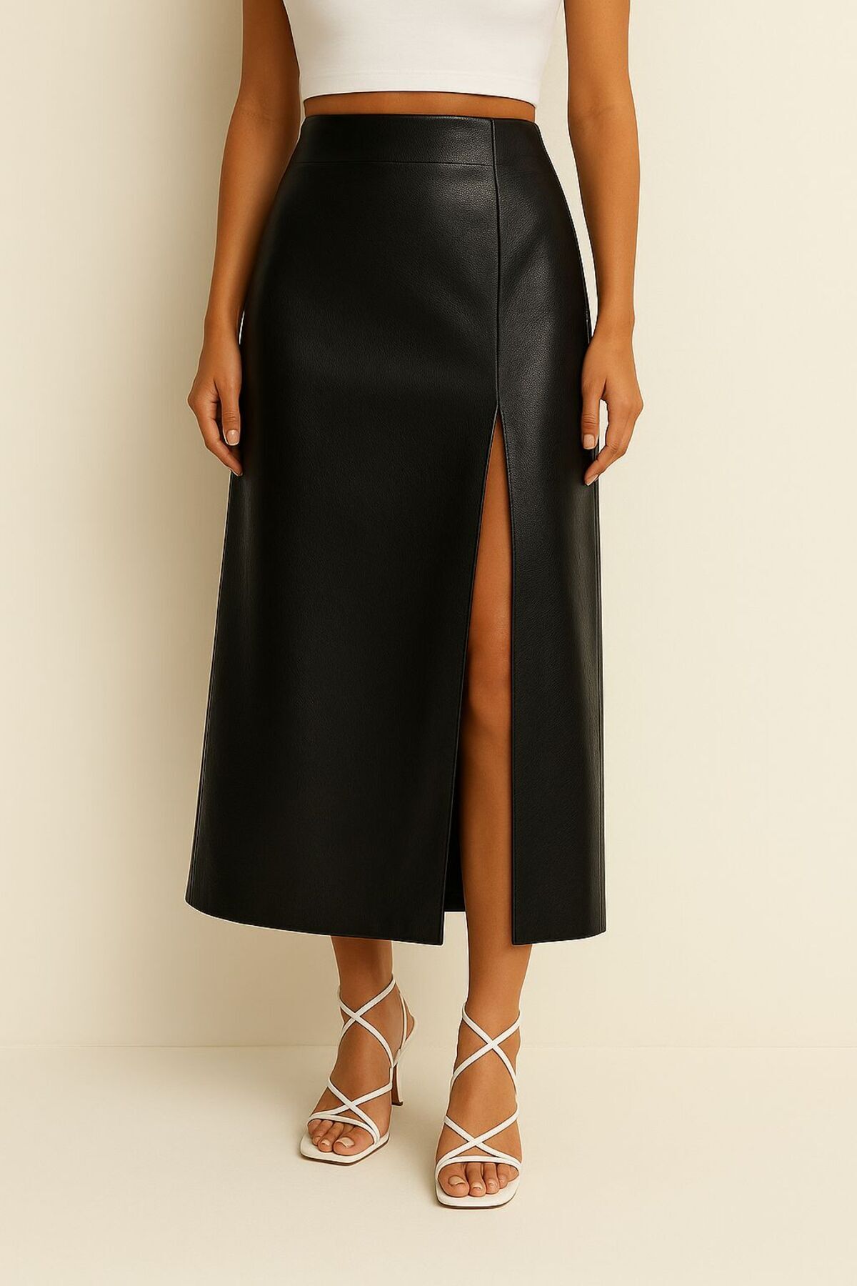 SİYAH YIRTMAÇLI ARKADAN FERMUARLI YÜKSEK BEL DERİ KADIN ETEK SİYAH YIRTMAÇLI ARKADAN FERMUARLI YÜKSEK BEL DERİ KADIN ETEK DERİETEK010 XL