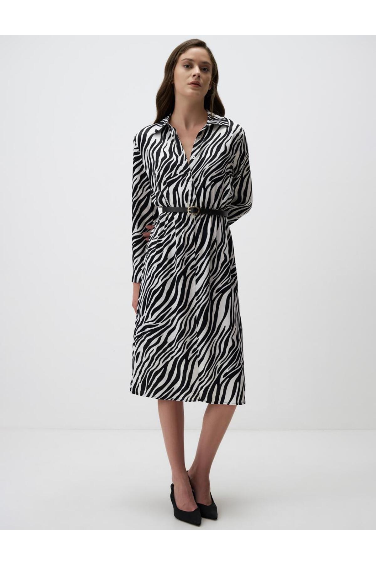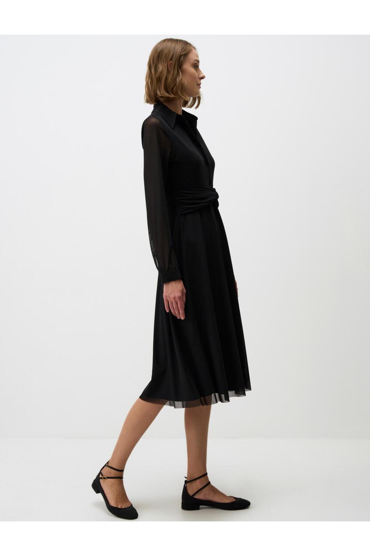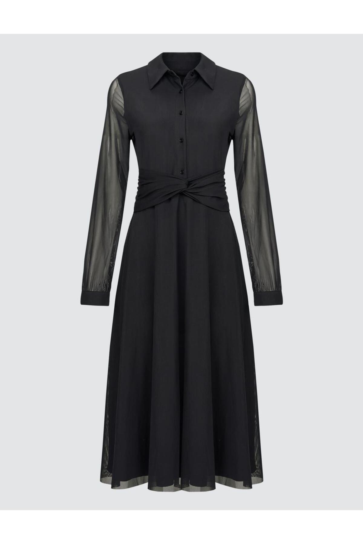 Siyah Düz Kesim Gömlek Yaka Örme Mesh Midi Elbise Siyah Düz Kesim Gömlek Yaka Örme Mesh Midi Elbise 4WW131735 XL