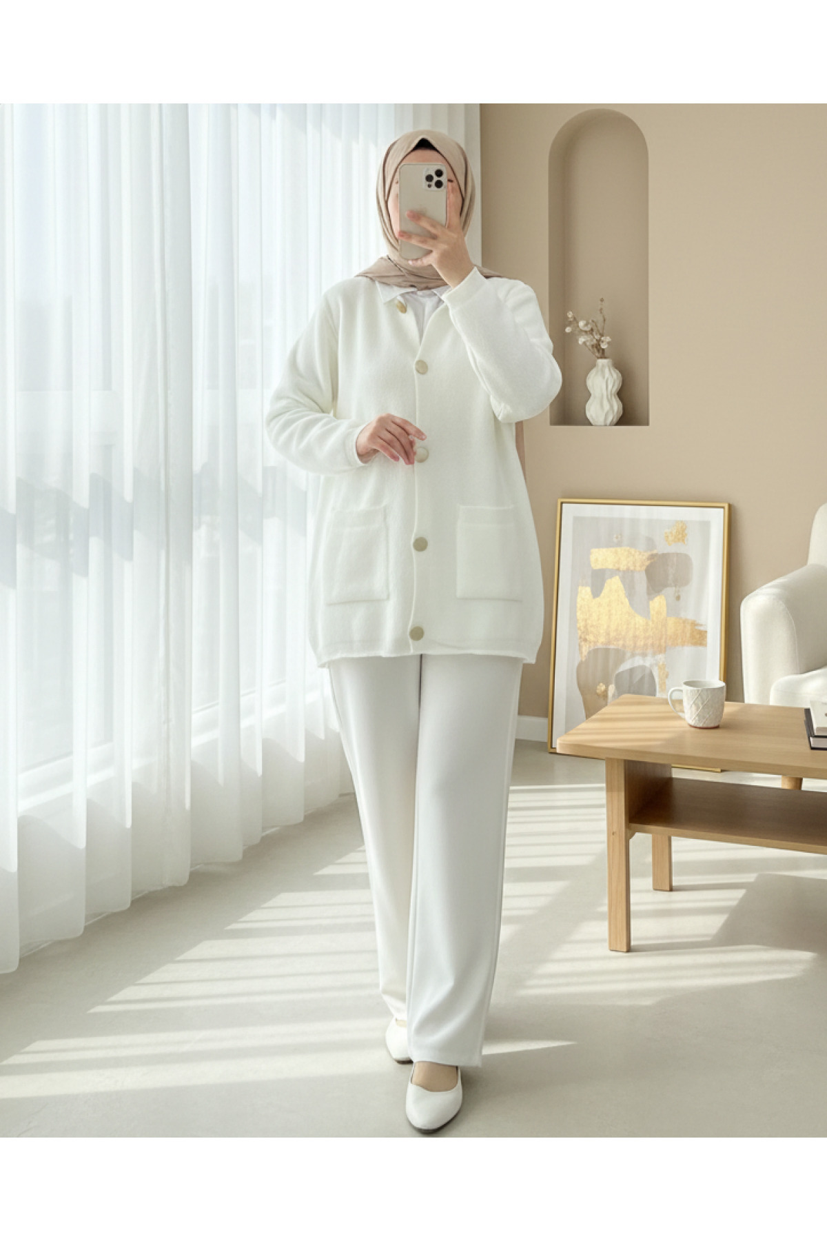 Düğmeli Fitilli Triko Hırka -Kahve Düğmeli Fitilli Triko Hırka -Kahve TY357-6164 Standart