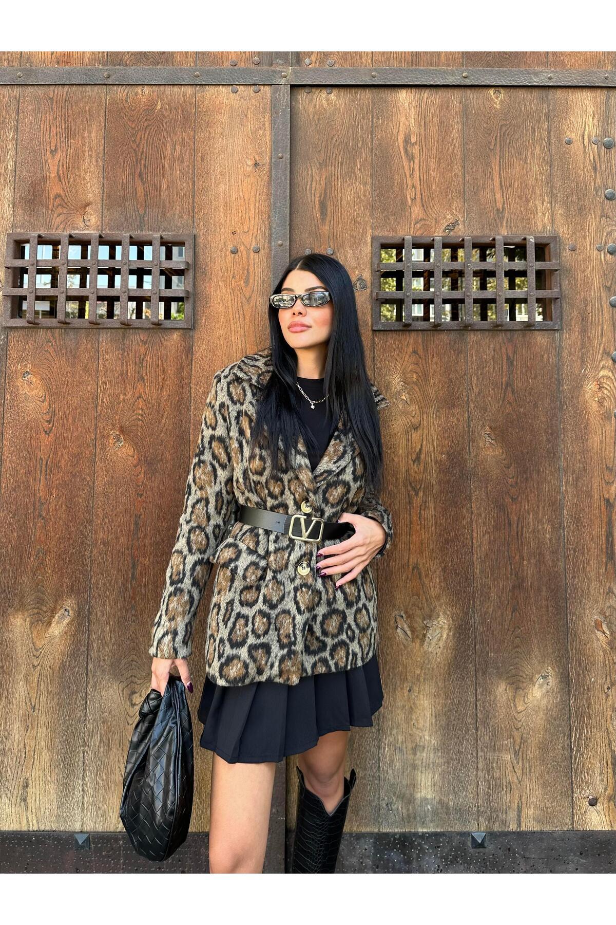 Luxury Leopar Desen Ceket Kahve Luxury Leopar Desen Ceket Kahve 17570 M