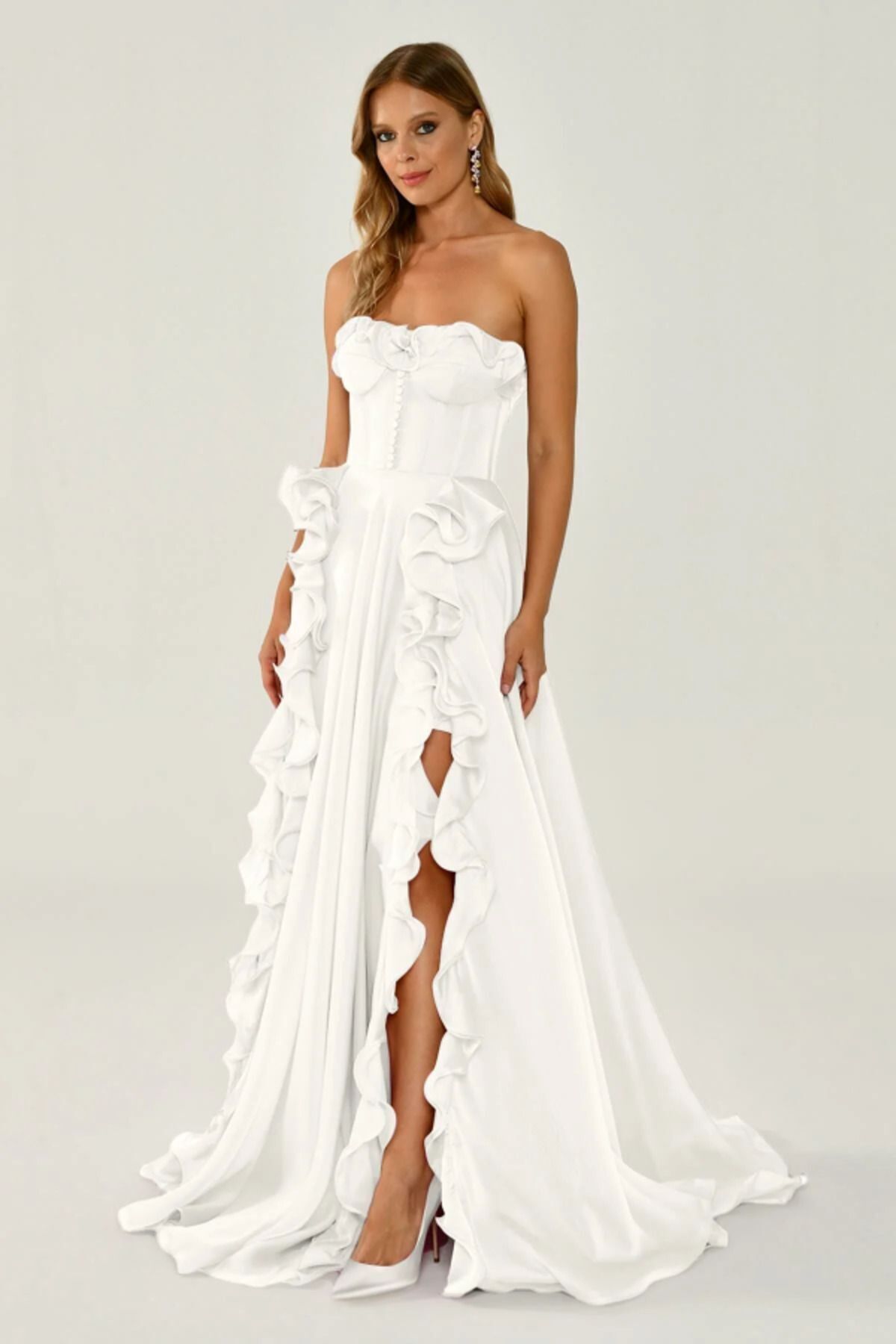 KALP YAKA FIRFIRLI ŞİFON YIRTMAÇLI ŞIK ABİYE ELBİSE KALP YAKA FIRFIRLI ŞİFON YIRTMAÇLI ŞIK ABİYE ELBİSE 5782 42