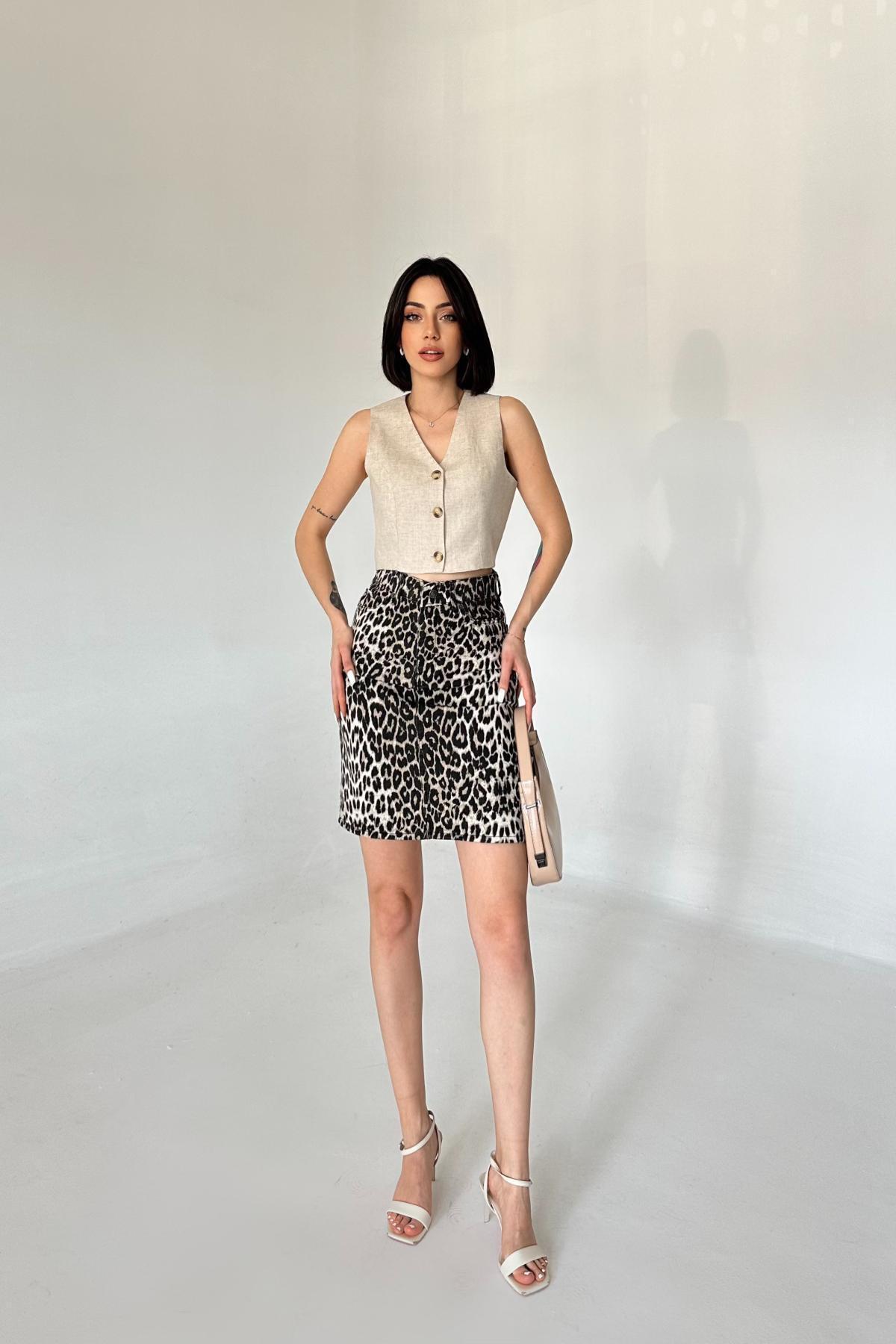 Kadın Düğmeli Dar Pamuklu Leopar Siyah Mini Etek Kadın Düğmeli Dar Pamuklu Leopar Siyah Mini Etek 173XRDN 42